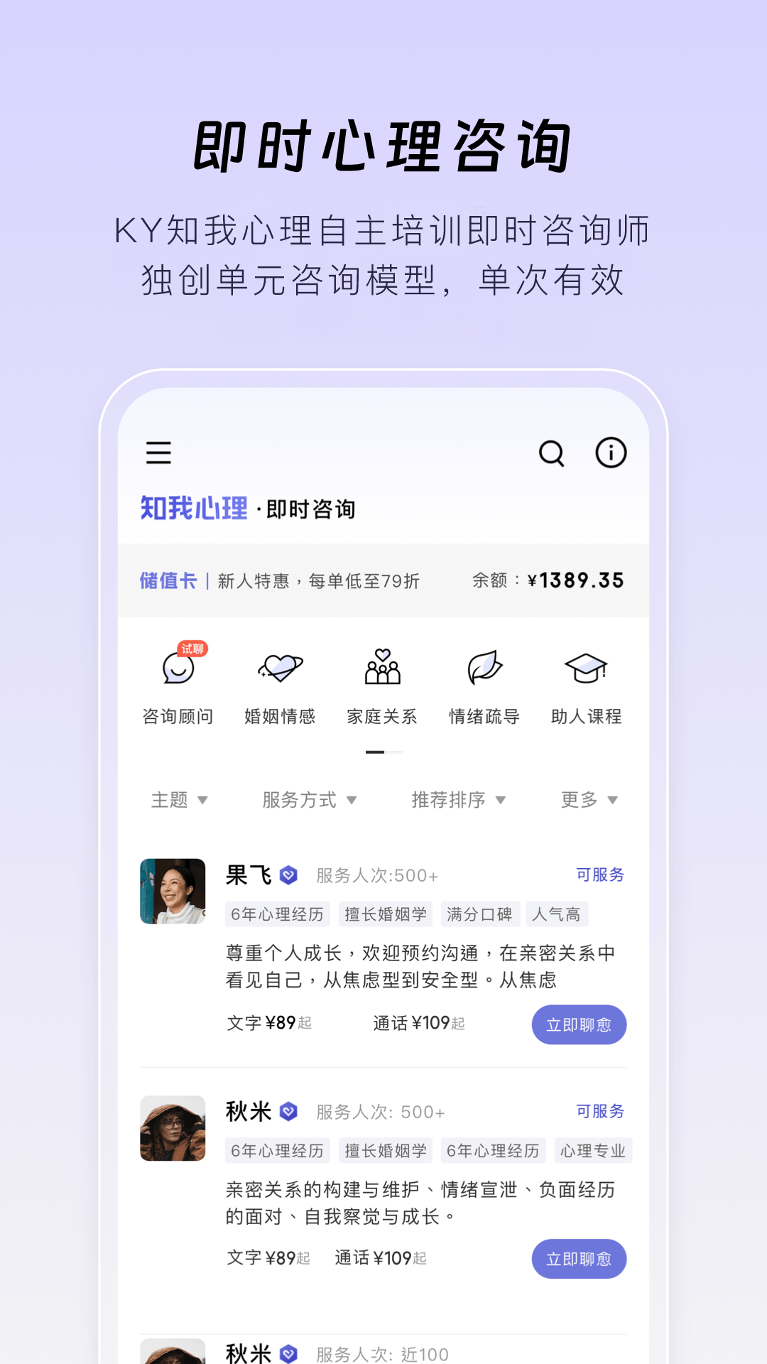 自主培训&严格考核专业即时咨询师;1V1匿名咨询,提供情绪支持与处理问题的思路。