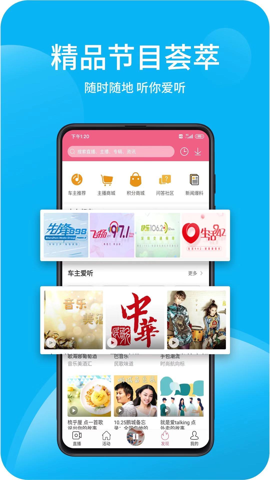 3、精品点播——汇聚深圳广播电影电视集团高品质的音频节目内容,电台节目回听,电台精品内容,主播定制专辑,内容涵盖新闻资讯、音乐娱乐、交通生活、城市服务、本地活动……随时随地,给你想听的!