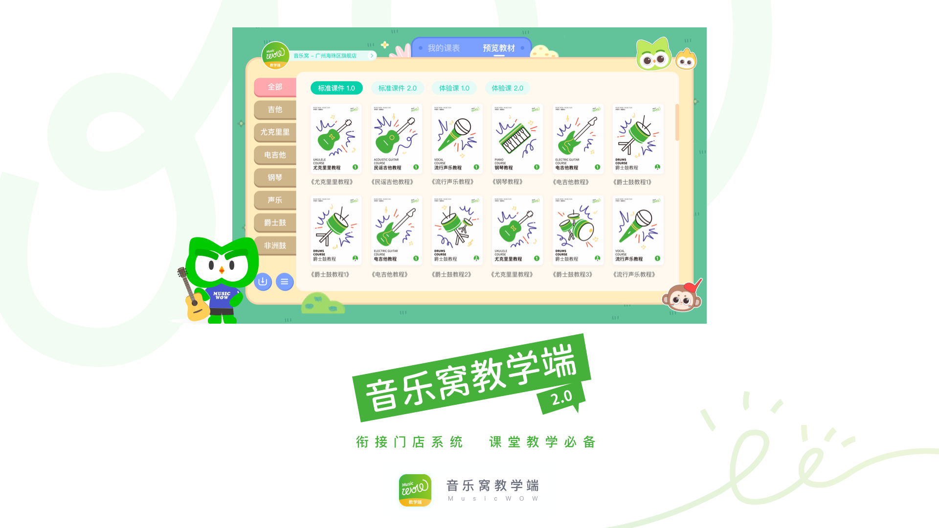 音乐窝不仅为机构老师提供授权教材,还提供配套的标准化在线课件,老师可结合课件进行课前备课、课堂授课及课后作业布置,让教学工作更高效!