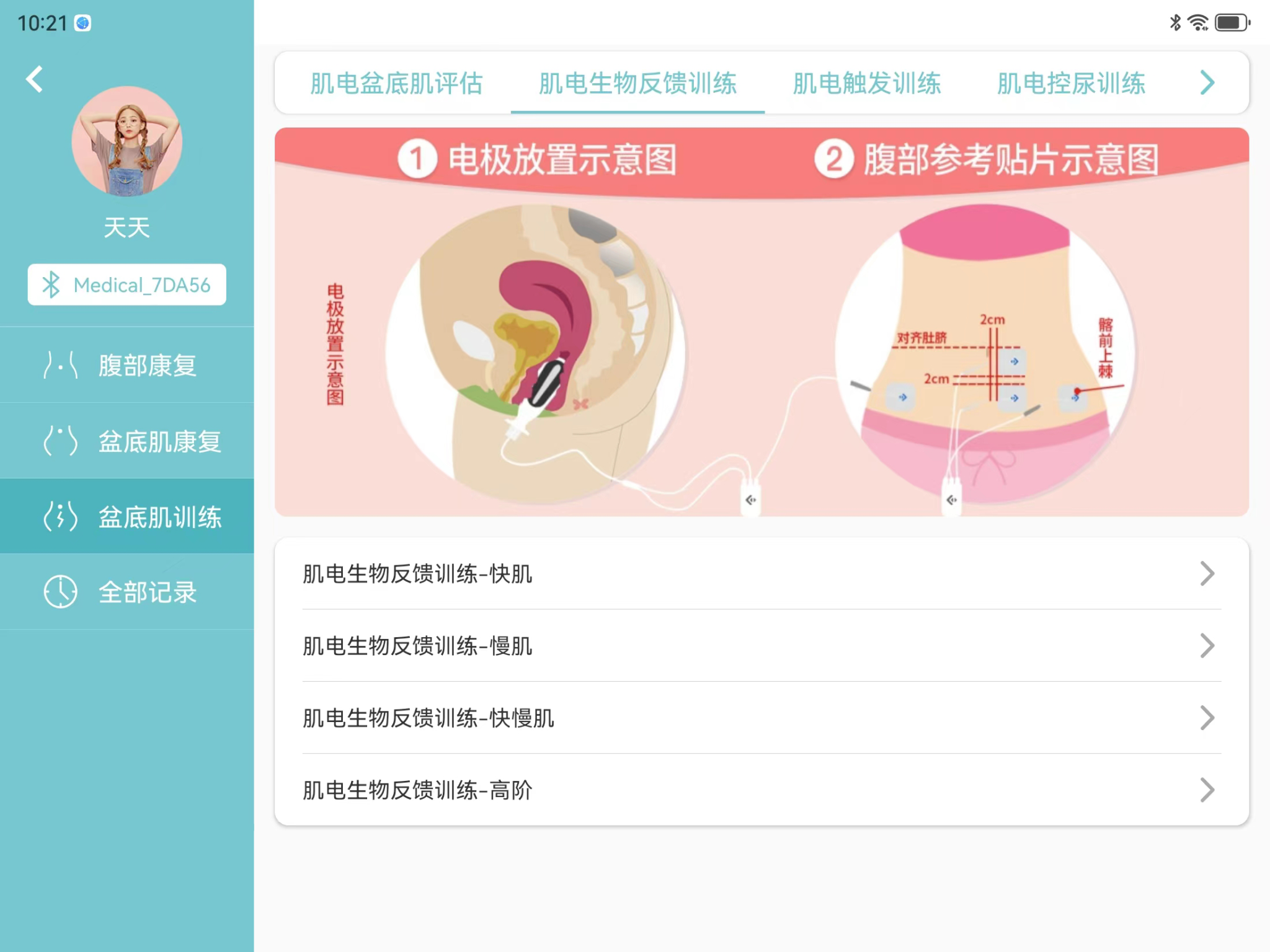 女性产前产后的身体状况有着很大的不同,产后恢复的好坏影响着产后女性的心理、生理健康。系统产后康复预防加修复保养,关爱产后女性。 系统产后康复 --基于APP的智能产后康复系统 女性自然之美由内而外,从怀孕到分娩,每个阶段都是蜕变,产后康复更是由内而外的滋养。随时随地、自由把握,产后康复新主流! 系统产后康复鼓励母乳喂养、自然分娩;预防胜于治疗,提倡纯物理治疗;倡导科学、自主、阶段性的完成产后康复和盆底康复;人性化的产后健康管理,让您健康活力如初,尽早成功康复,成就现代女性终身魅力。 1.适用于产后催乳 2.促进产后排尿、子宫复旧 3.尿失禁的辅助治疗 4.产后盆底康复 5.盆底肌力分析 6.盆底肌肉主动及生物反馈锻炼 APP提供视觉和听觉指导,使您更轻松和简单地充分利用您的移动医疗设备。APP以快速,简便的方式记录,保存和呈现您的使用情况,可以帮助您跟踪使用情况。