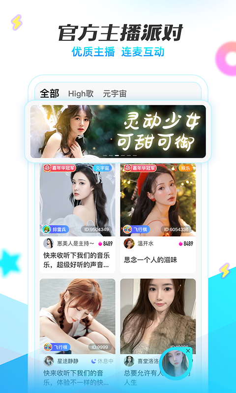 应用详情:耳海是一个友好和谐的年轻人娱乐聚集地。在耳海APP上,你可以通过语音聊天功能约小伙伴们一起玩游戏,一起聊天。你也能在耳海上进行自主开播,秀出才艺,展示才能,得到他人的认可与支持。