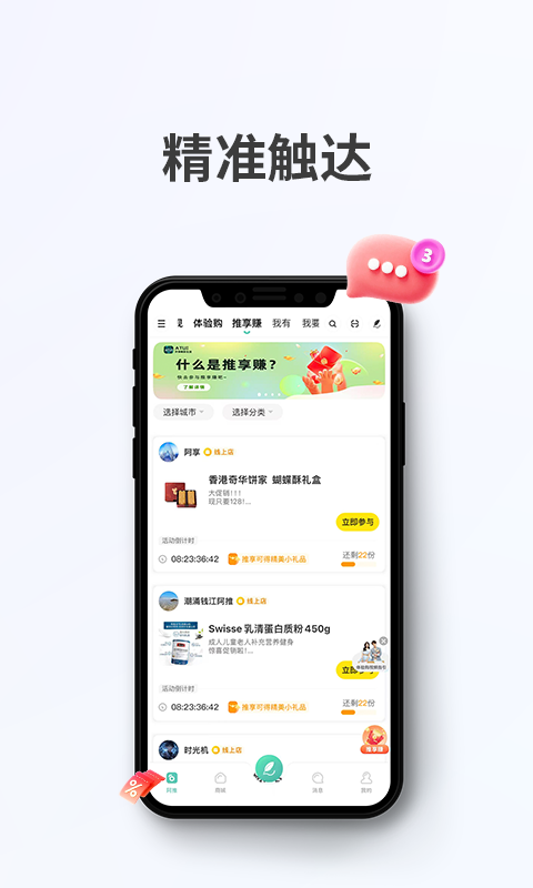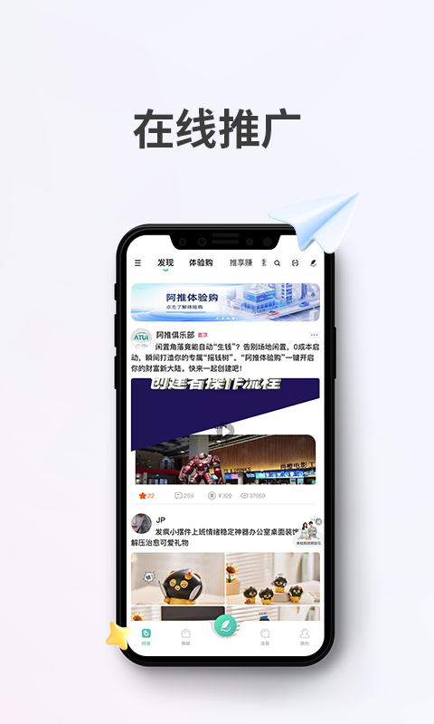 在阿推,精品汇聚可随心挑选;创新推出“体验购”服务,融合线下体验,线上下单,革新消费体验。借助“推享赚”,获得自用好物还能赚取收益,让分享有价。