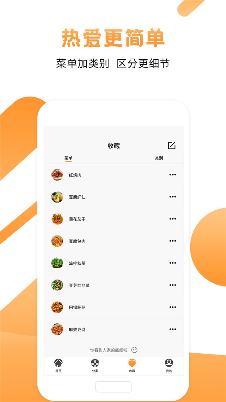 把喜欢的菜品和菜谱推荐给你的朋友和家人吧,同时也可以收藏到菜单中,下次大显身手的时候,就可以直接查看菜谱啦!