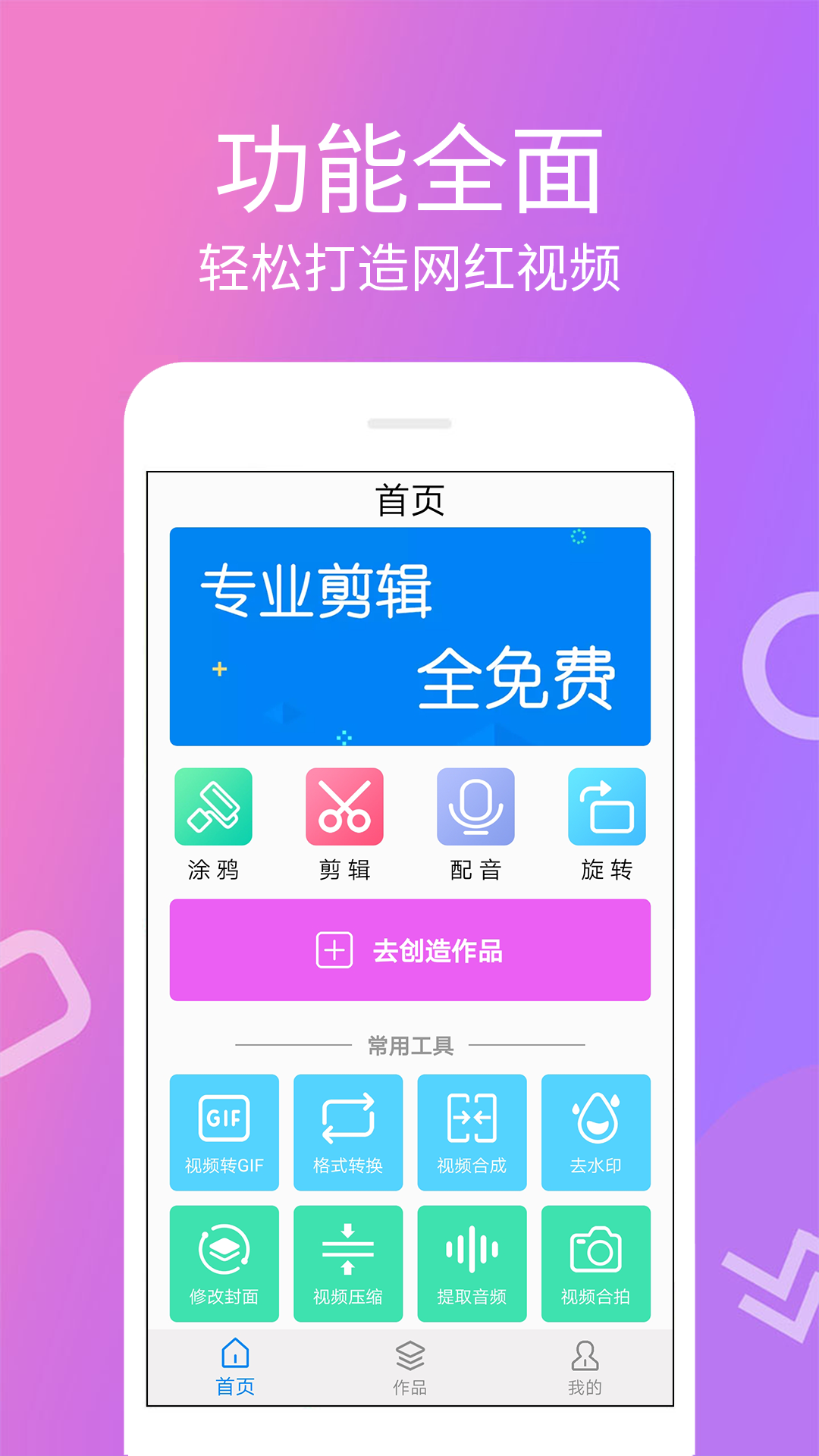 视频剪辑、视频制作、视频编辑软件,集多功能于一体的视频剪辑工具,视频编辑王。 【视频剪辑】视频拼接、视频裁剪、转场效果,成为短视频diy达人 【图片编辑】大片效果、胶片滤镜、美颜美图,电子视频相册轻松就能做 【视频水印】视频去水印,视频制作还可以批量添加自定义水印 【视频分享】精彩视频制作,趣味短视频,vlog,大片,分享给好友 【音乐剪辑】添加本地音乐到背景曲库,调整音量、淡入淡出等音效 【视频字幕】vlog故事不可缺少的字幕功能,简单操作就能为视频添加实时字幕