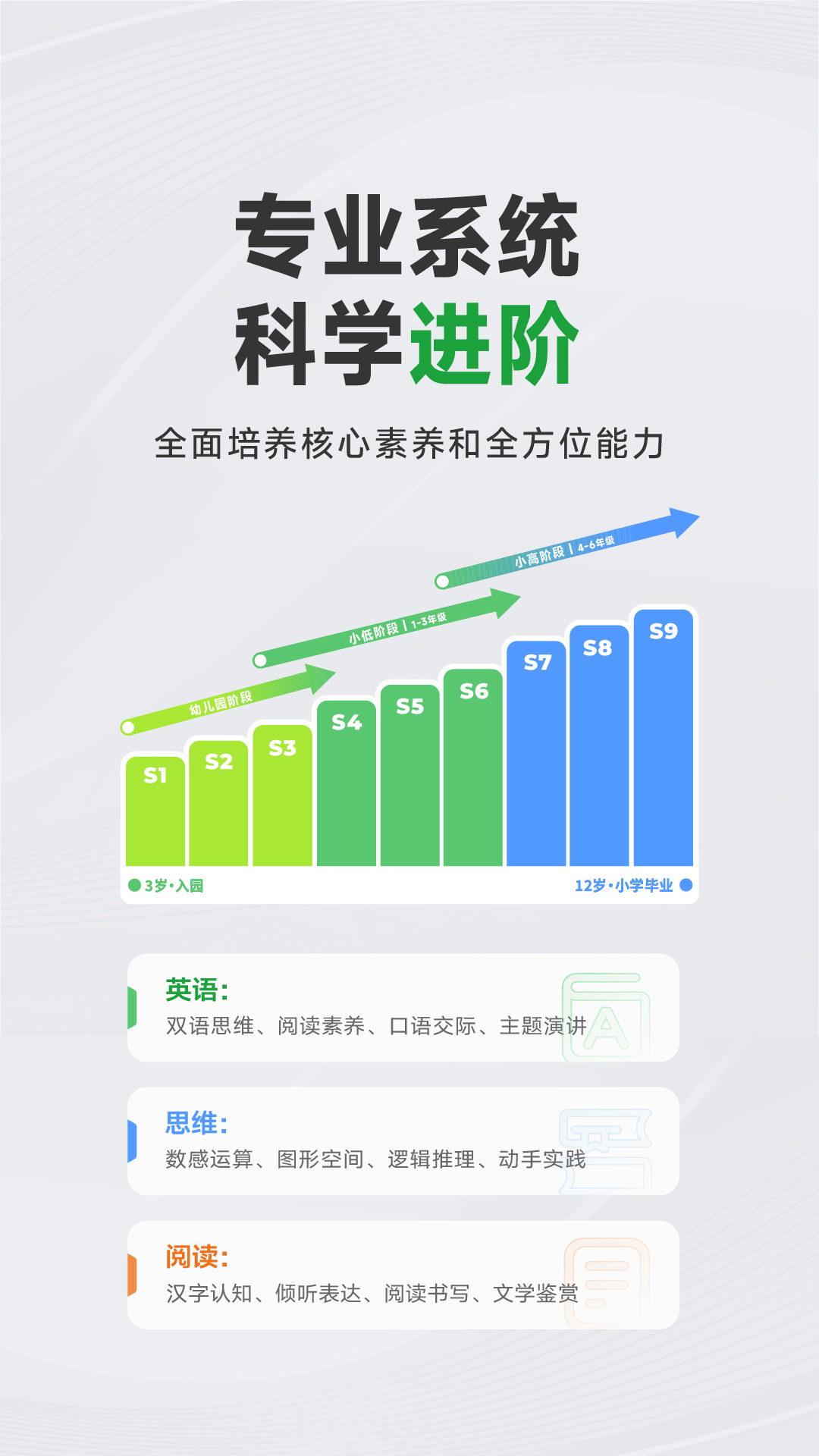 -教学体系专业、系统,针对3-12岁儿童系统规划学习内容。