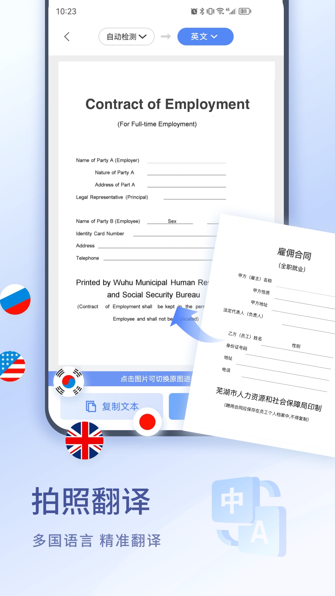 【拍图翻译】扫描翻译,拍照翻译,支持中文,英语,日语,法语,德语等多国语言;