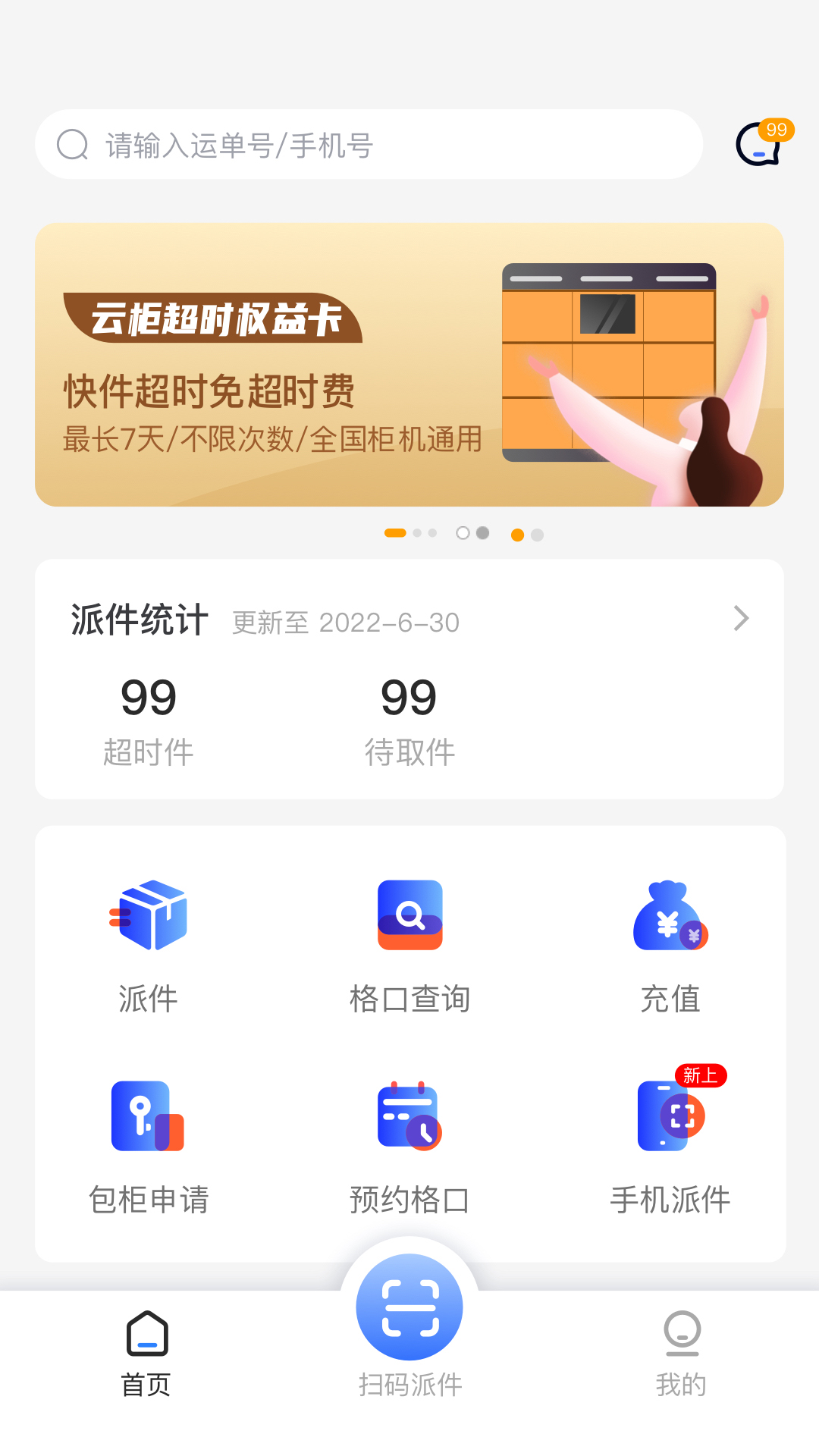 云柜快递员App,是实现快递员查询派件信息、查询剩余格口、充值、包柜、寄件揽件、寄件提现等功能的工具,快递员更加方便快捷完成派件