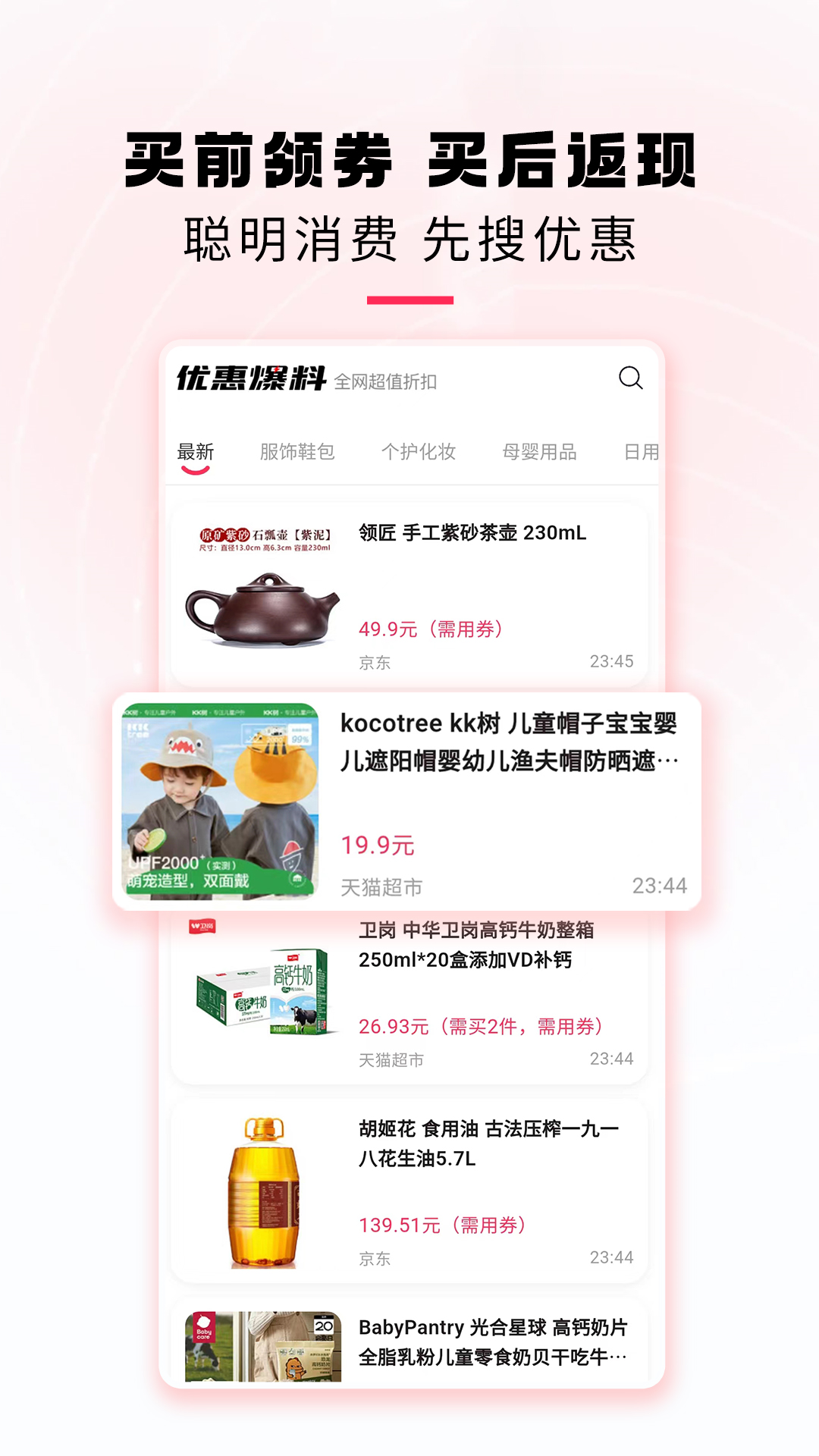 每日上新,百万张隐藏优惠券,更有超高值优惠券限时抢,享独家优惠,少花钱多购物!