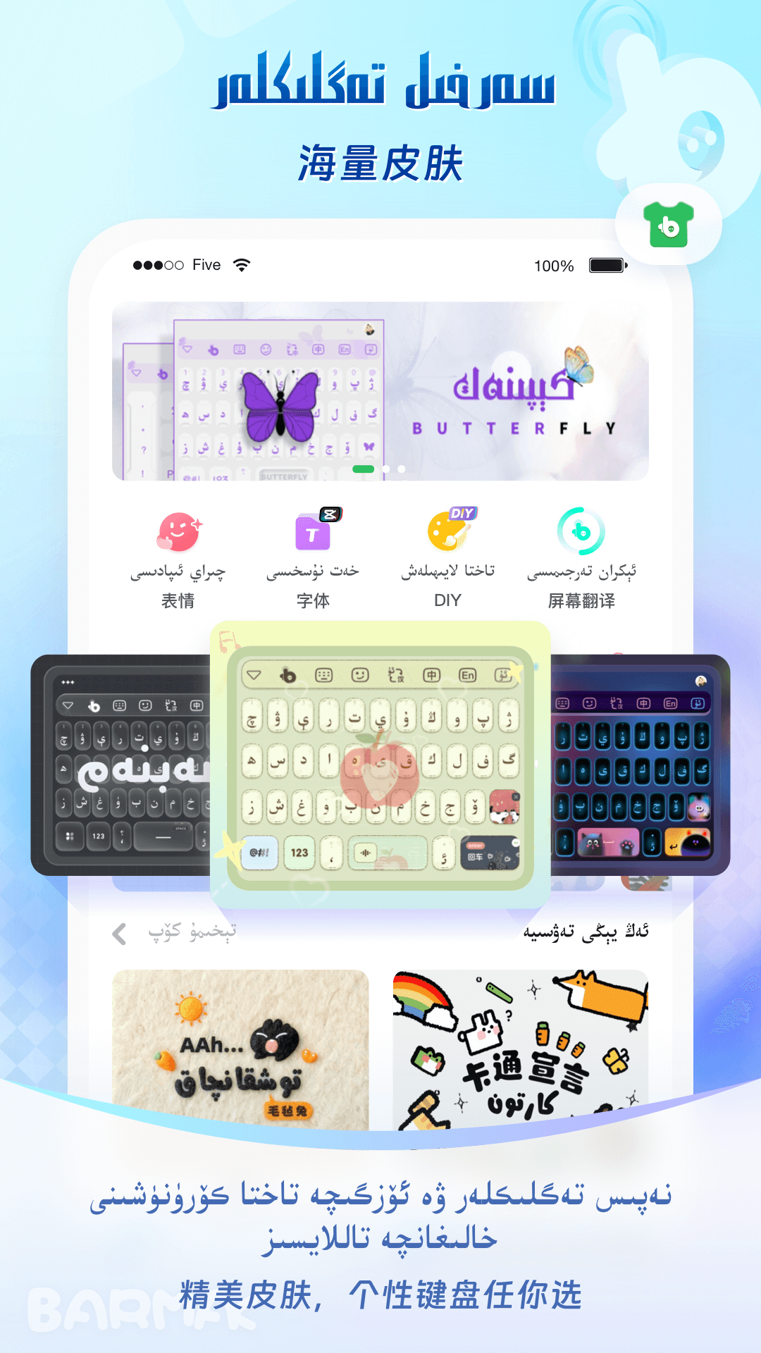 应用详情:BARMAK维语输入法(uyghurche kirguzguch)是一款支持老维语、拉丁维语、汉语、英语的多语言输入法,为新疆和所有使用维吾尔语用户提供更舒适便捷的打字体验。