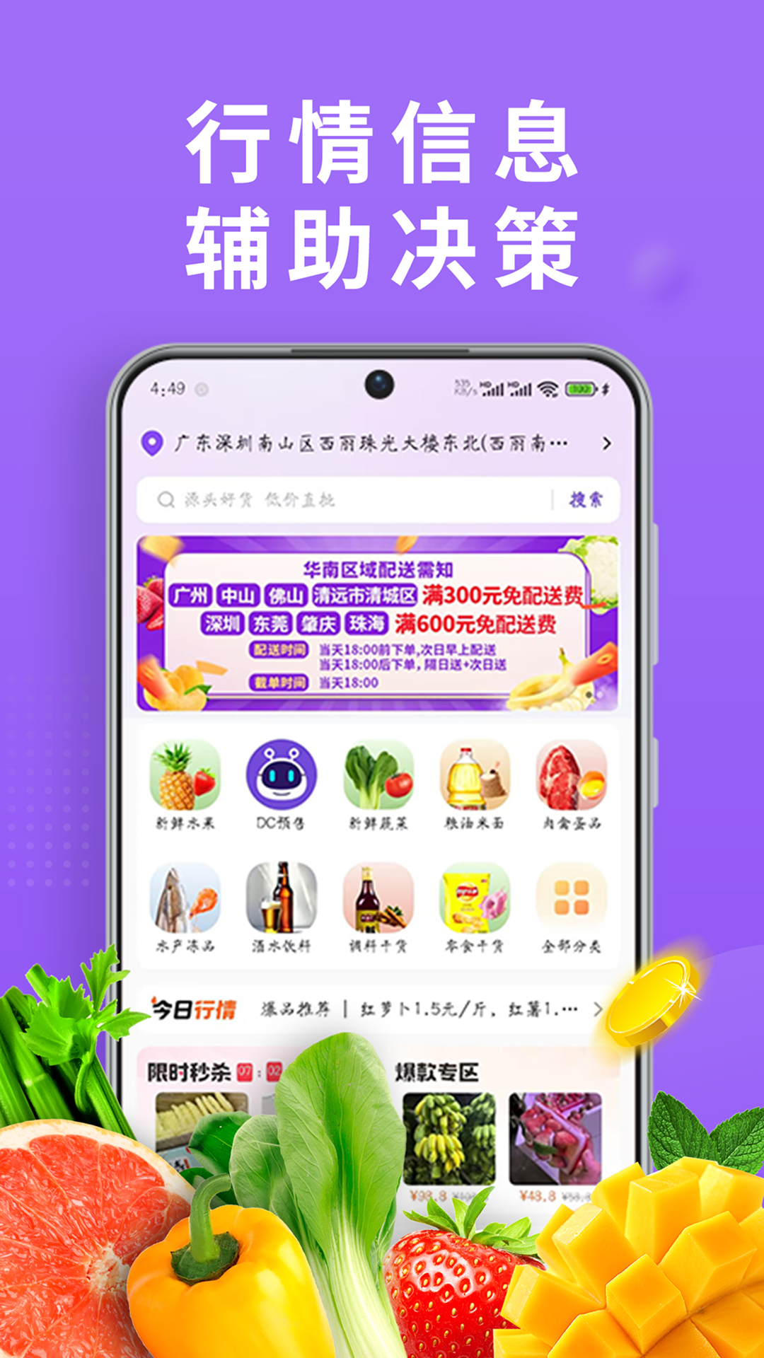 DC严选批发是一款可实现批量集采的农产品交易APP,为用户打造一个生鲜农产品购物商城,方便用户了解产品信息、行业信息,为用户批发购物带来便利。