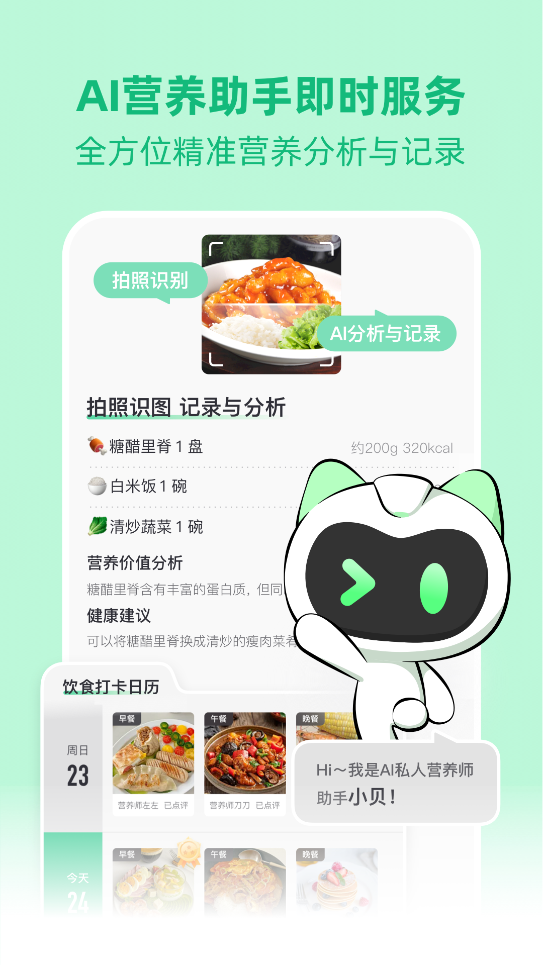 自研营养大模型,随时随地,精准饮食识别与营养分析支持文字与图片输入,营养素分析,热量、营养成分与价值、个性化健康建议5秒生成,保障你全家的餐桌营养。