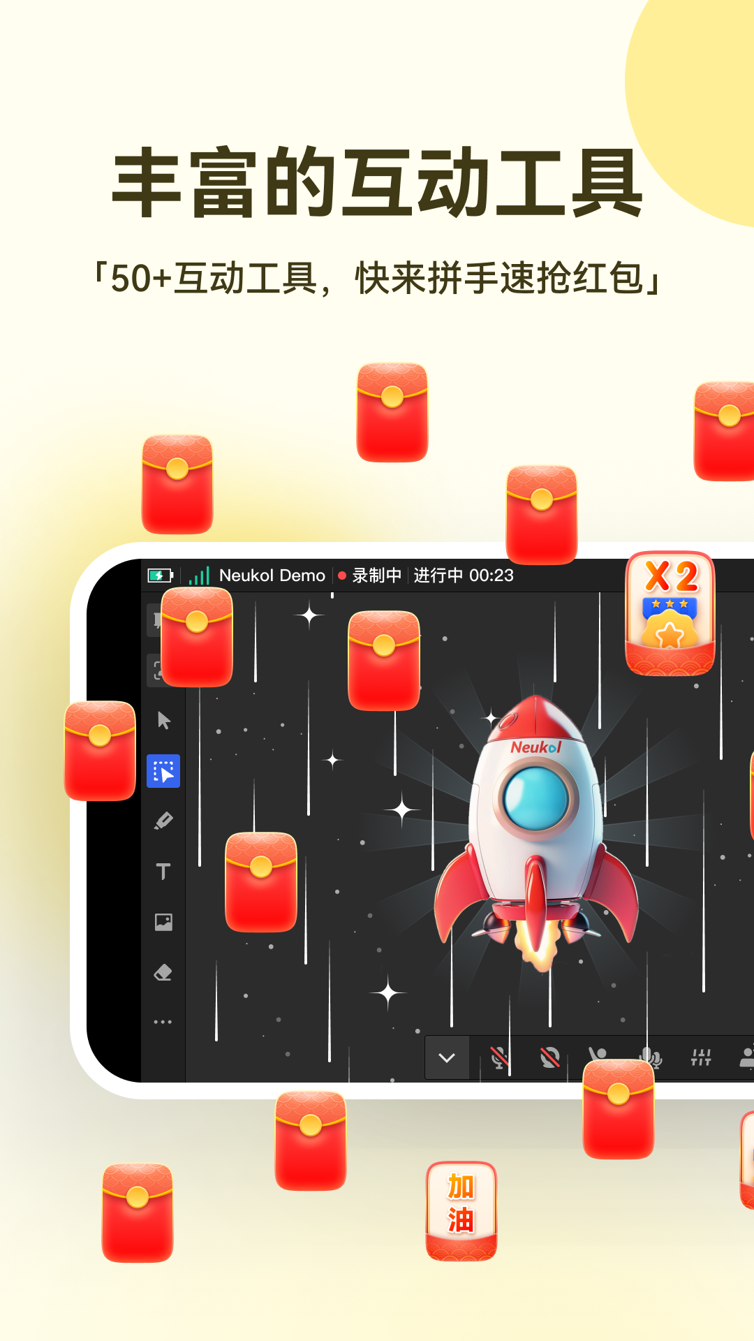 应用详情:Neukol是一款基于培训场景打造的专业互动工具,提供完整的在线互动培训解决方案,具备高稳定、超高清、超低延迟、高保真声音等特点,满足在线培训、职业培训、企业培训等多场景高质量的培训需求。