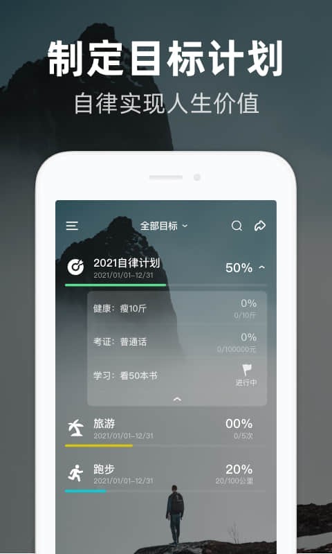 目标可以是多元化的,它可以是看几本书,背多少单词、通过考证、坚持早睡早起、少打游戏、瘦身几斤、控制情绪、旅游几次、坚持记账、实现存款等各方面。