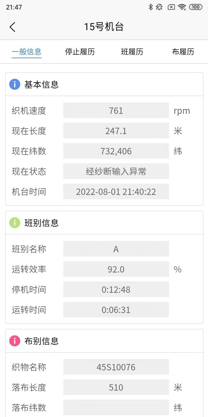 应用详情:通过DKMS织机集中联网管理系统,实现对整个纺织厂的织机进行远程监控。实现织机监测,生产数据记录、统计、管理功能。管理人员可以通过织机集中联网管理系统全面了解各织机的实时状态情况数据,通过分析织机积累的各种历史数据,有利于及时发现各种原料质量、织机维护情况等问题;织机故障远程报修系统还能及时组织维护人员对织机进行维修;并可以查询故障报修记录,为事后分析故障原因提供时间证据。
