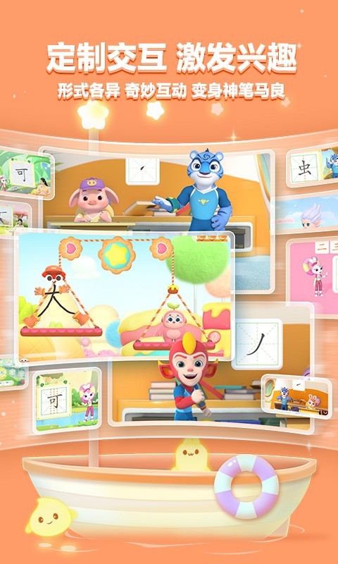 精心设计“学、写、练”学习闭环。真人老师专业书写示范,宇宙护卫队IP伴学,定制化的趣味交互,“笔贝贝”卡通形象全程带领孩子体验奇妙的汉字世界,让孩子坐得住、练得多,真正爱上写字!