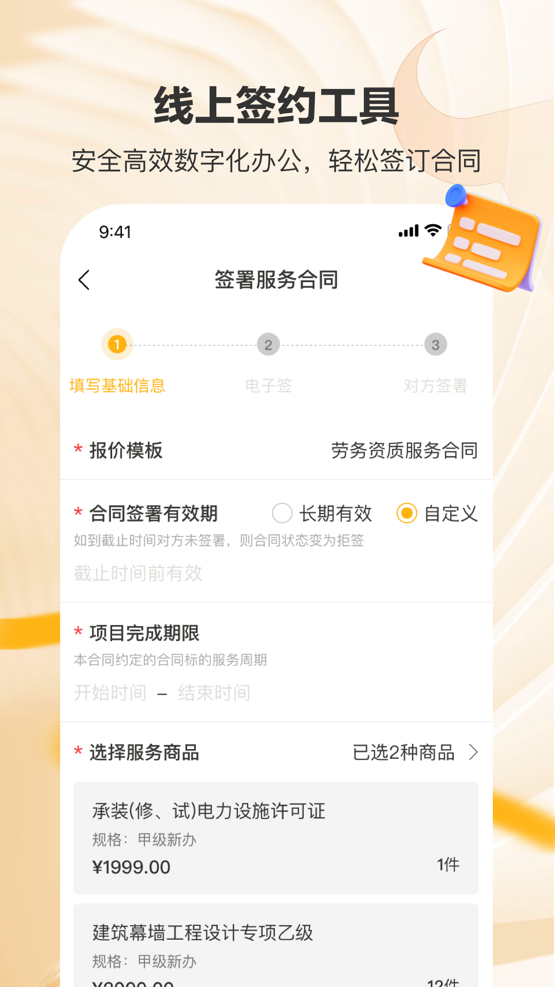 工具赋能:提供营销触达工具、在线报价及签约工具、履约助手、灵工服务体系产品分销等工具,赋能商家,助力提升销售交付及管理效率。