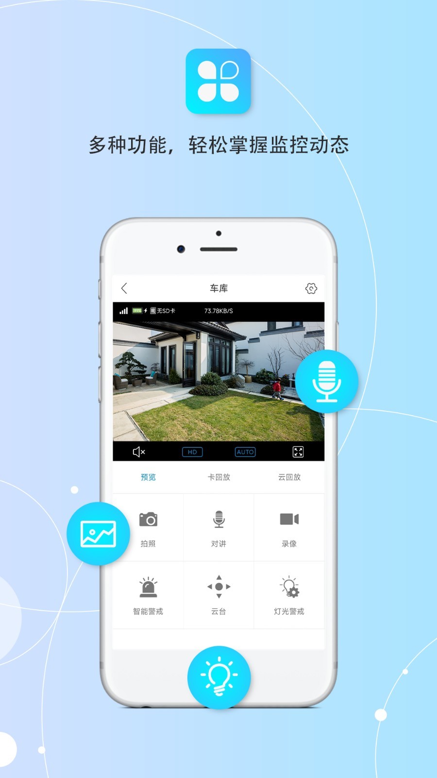 创视云是网络摄像机的配套软件,配套小雨点、摇头机等前端监控设备,通过设备的序列号以云方式登录,将实时的监控画面显示的Android移动设备上并对设备进行预览操作。
