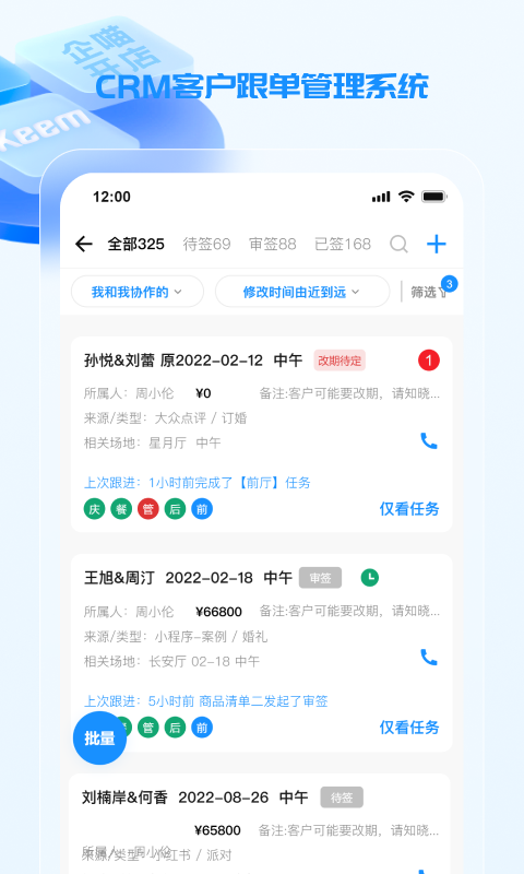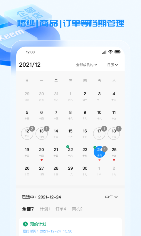 企喵开店是一款专为多行业打造的专属营销管理系统,已有APP、PC端、IPAD端、微信小程序,功能全面覆盖谈单管理生命周期。企喵开店不仅能提供高颜值的营销显示,更以营销运营业务的底层逻辑构建,结合当下的线上为趋势而打造,内置专属CRM客户跟进管理、订单客户管理、合同管理、档期管理、执行管理、商城管理、小程序、金刚管理、收银、财务数据统计管理等多系统为一体的综合型营销系统。可满足每家多功能店的自定义设定功能和多门店同步管理,全方位聚焦门店的实际经营需求。以数字化、标准化、系统化的方式助力多功能门店的数字化转型,实现差异化经营。企喵开店实现全流程管理闭环,让销售在线谈单转化成交不再难,省力业绩倍增,已有200多个城市的3000+公司注册使用。
