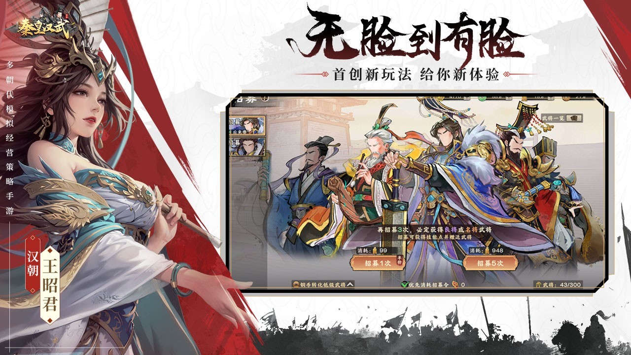 应用详情:《秦皇汉武》是一款模拟经营策略以及融创了SLG官职和红颜系统移动模拟经营的游戏。SLG交易与拍卖系统,装备全靠打,平民也能发家致富。游戏基于成熟引擎和核心理念,并增加了全新的战斗方式和兵种系统,采用更符合年轻用户的卡通渲染风格。在游戏中,玩家可以通过千变万化的技能组合,搭配不同的兵种,组建自己独特的势力,可以跟同伴们一起征战沙场,体验秦皇汉武时代,一统天下,开疆拓土的豪情。