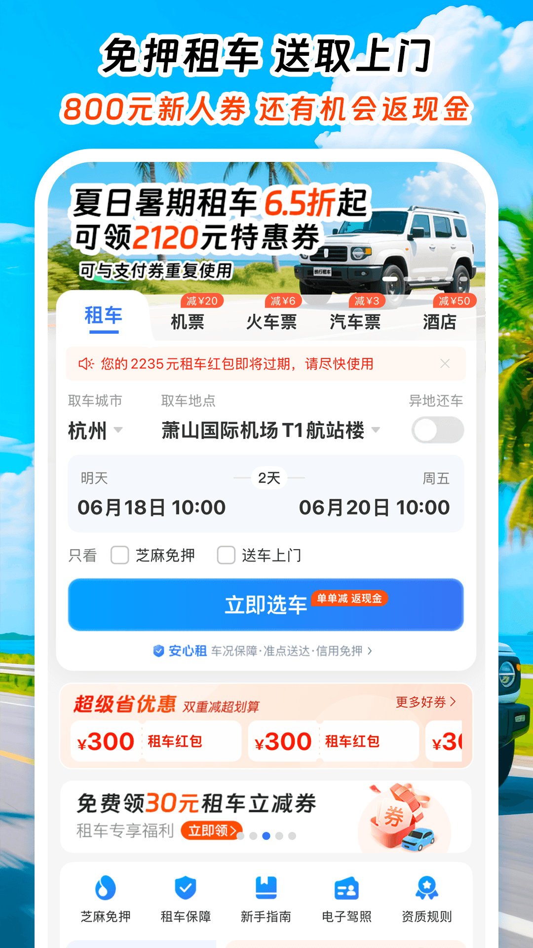 · 新用户专享"800元优惠券",所有用户首单即享信用免押,无需额外费用