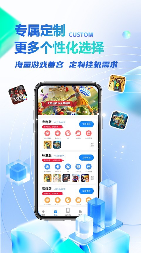 应用详情:八通云手机是一台虚拟的云手机APP,是手游玩家必备神器,这里有海量手游辅助供您挑选,玩家可通过八通云手机App托管游戏,保持24小时在线,让您不再为手机发烫,电池不足,网络信号不稳定而烦恼。离线挂机,省钱省力,八通云手机释放您的双手,让游戏更轻松,还等什么快来下载八通云手机app体验吧。