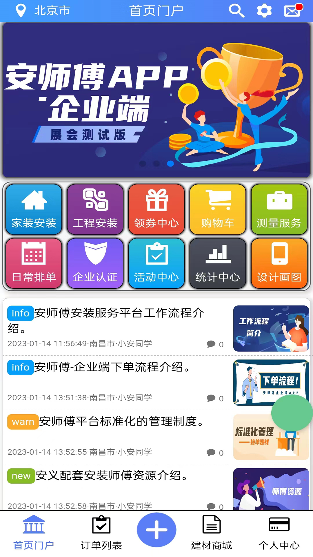 安师傅-企业端APP是为B端用户量身定制的下单及订单跟踪移动端应用, 它为门窗制造企业,经销商,门店等提供包括以下主要功能服务:(1)家装门窗安装订单服务,(2)工程门窗安装订单服务,(3)上门测量服务订单,(4)在线设计画图服务,(5)订单跟踪进度详情,(6)在线沟通交流,(7)挑选安装公司或班组服务等功能。