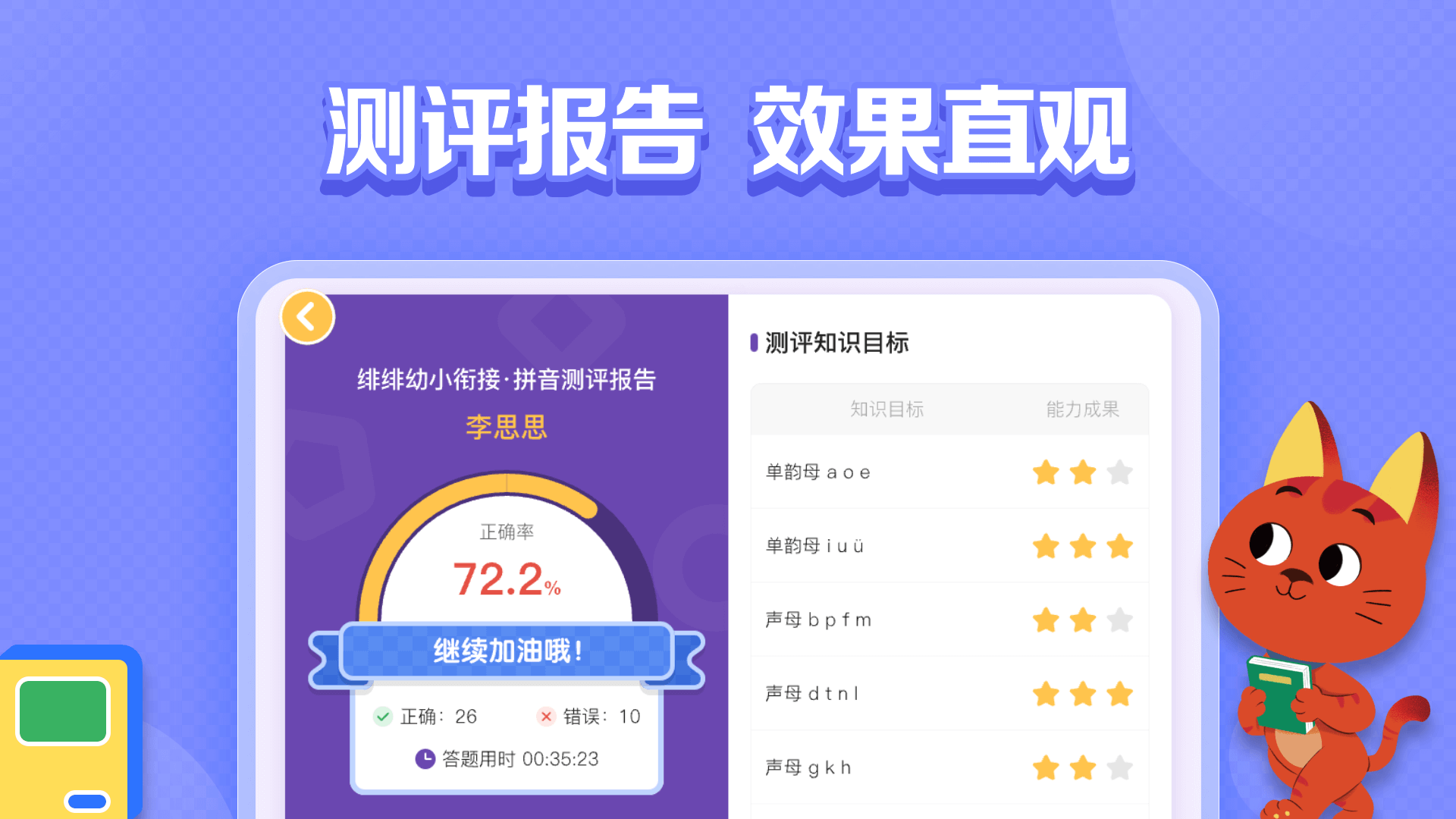 内嵌了丰富多样的游戏内容,采用了游戏化、交互式学习理念,让孩子在学习的过程中感受到乐趣,从而更加高效的学习。