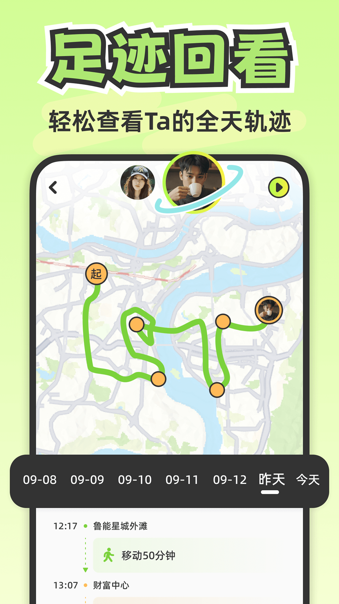 我们也懂情侣对行程动态的关注,Lookus 支持查看 7 天以内的完整历史行动轨迹,清晰还原对方的移动路线、移动速度与时间节点,每一段行程都有迹可循,出行动态一目了然。同时不用再为手动报备费心,全自动行程报备功能,会在对方上车下车、抵达或离开任意地点时,自动同步行程动态,不用手动发消息,就能让对方随时知晓你的行程,消解异地的牵挂,也不用再为 “去哪了不报备” 产生误会。