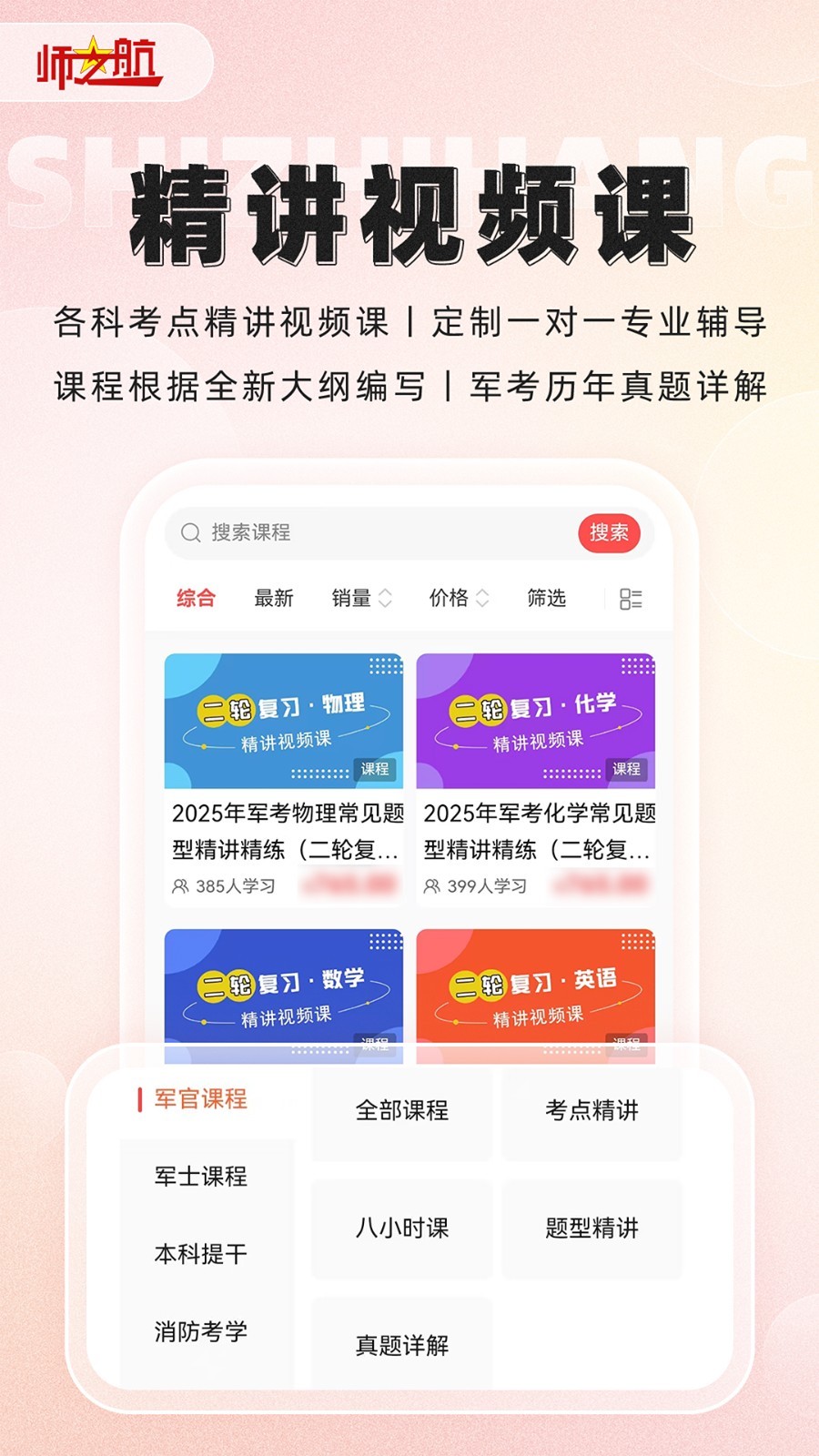 应用详情:师之航军考旗下APP,战友一站式学习软件,刷题、课程、资料、资讯全都有、为军考...