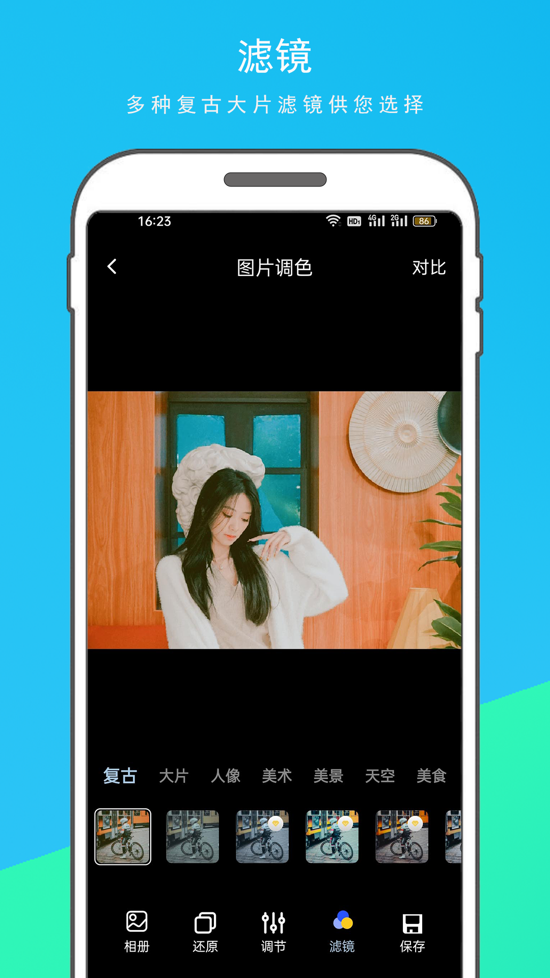 逗图相机是一款复古胶片相机,可以拍摄复古照片,素描照片,浮雕照片,胶片照片等,轻松拍出拍出氛围感女生,拍出时光老相机的味,你也可以拍建筑,让城市印上岁月的痕迹,让你变成拍照达人,可以对拍摄的照片进行调色处理,如曝光度、色彩饱和度、对比度、色温、色相、亮度等;APP还有相纸功能,包含多张精美相纸,让你照片更漂亮。