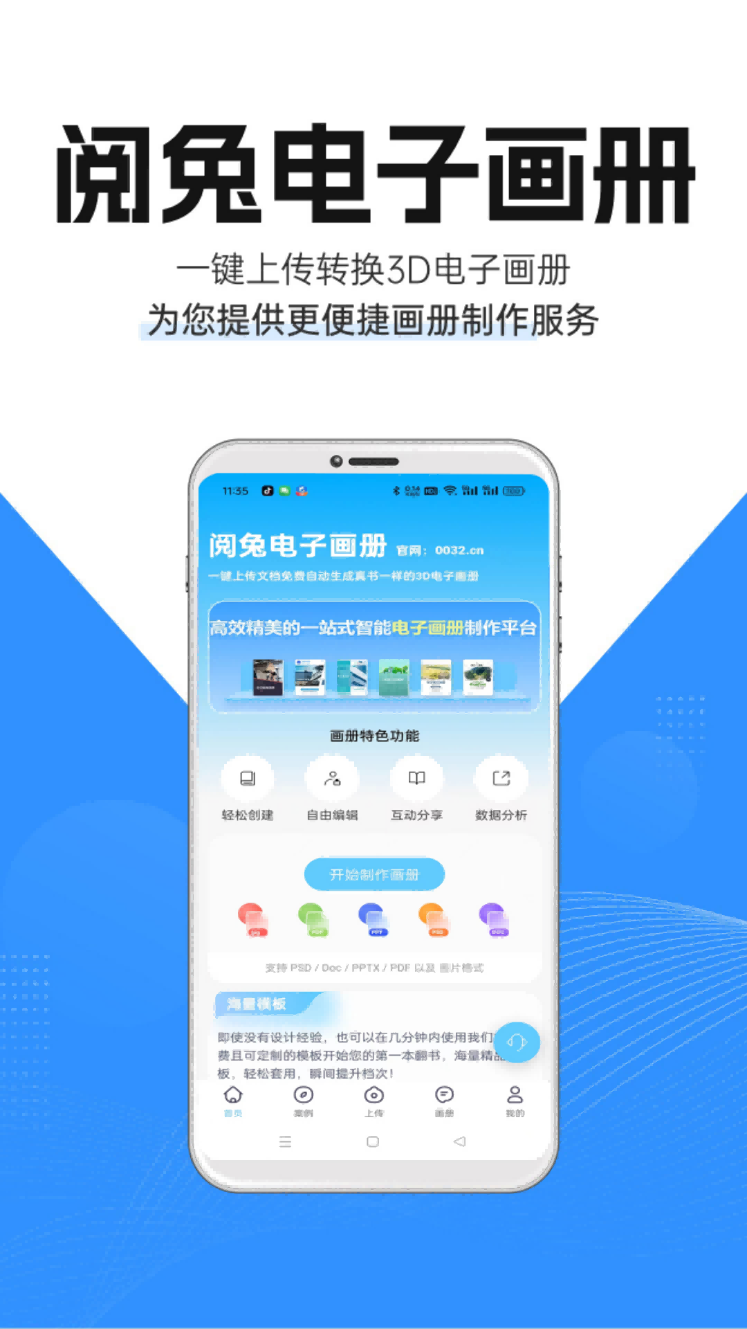 阅兔电子画册拥有便捷的制作方式,用户可以直接上传PDF、PPT、图片、Word文档等格式的文件,快速转换为翻页电子画册。这一功能大大节省了用户的时间和精力,即使面对大量的文件,也能轻松应对。