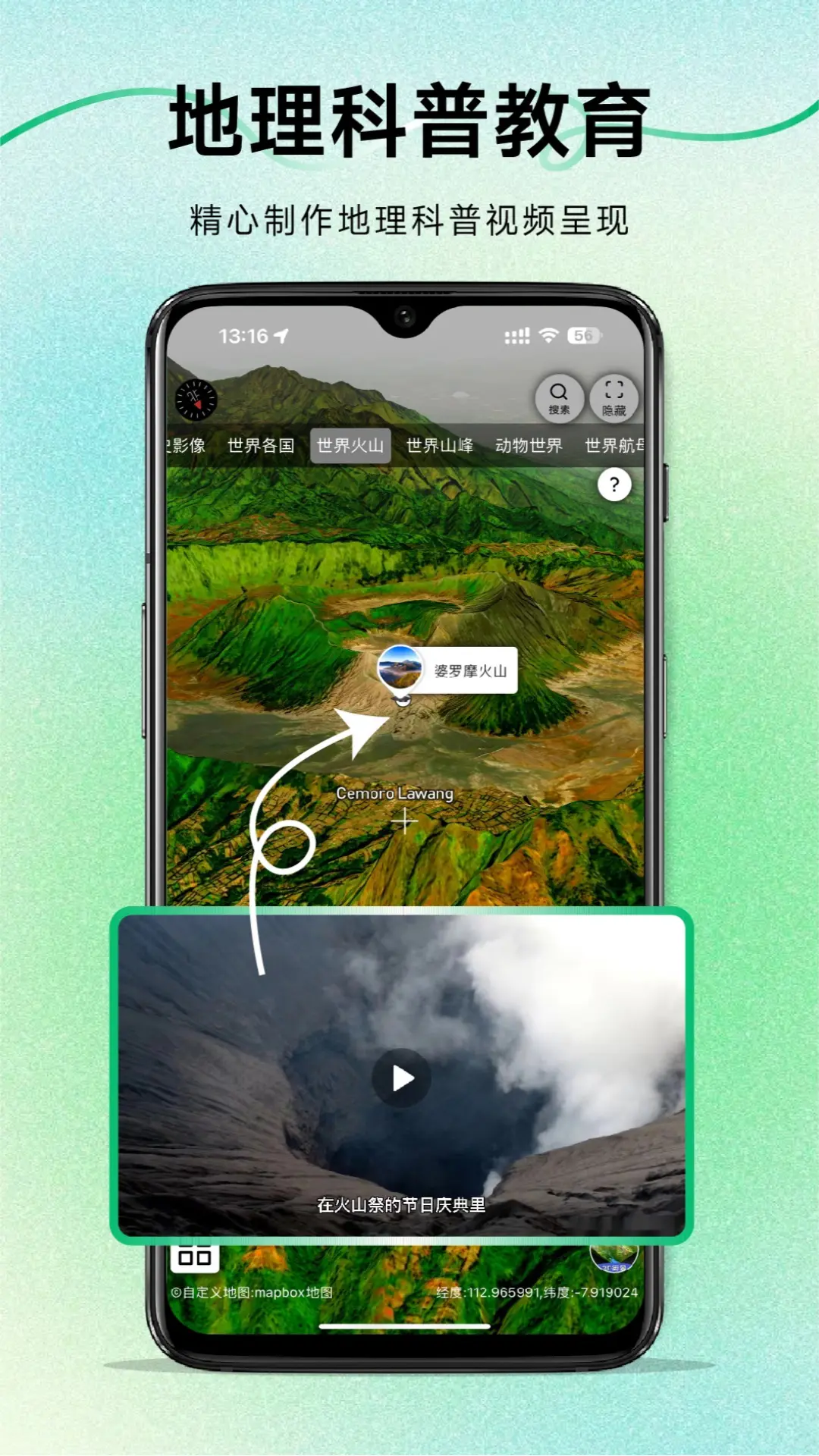 7、强大的【史地馆】功能,找钓点、旅游景区、大像素、实时、历史影像、地理科普、世界各国等。