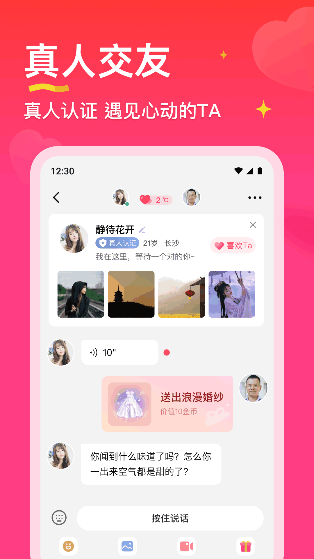 应用详情:真心聊陌生交友视频聊愿相遇良缘是一款实时在线交友APP,用户的恋爱神器,用户都...