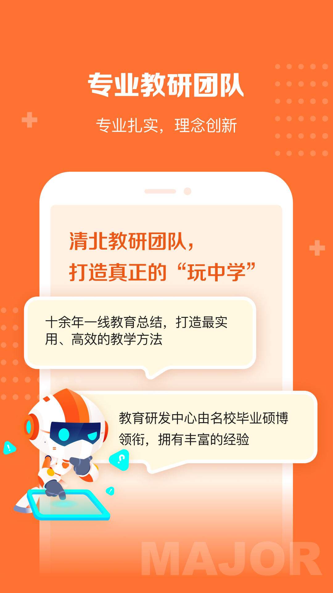 4. 专业教研团队清北名师领衔内容研发,具备多年教研教学经验,建立科学有效的教学体系,匹配不同年龄段孩子的认知水平。