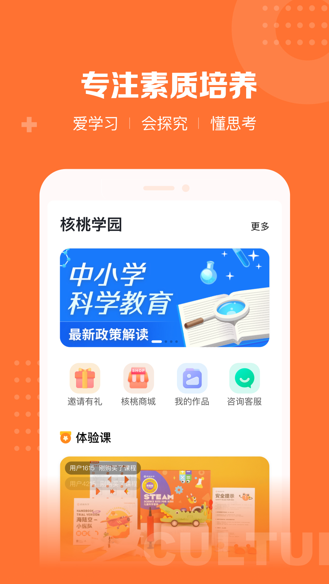 应用详情:核桃学园是一个素养学习内容平台,为5-12岁的孩子提供科学知识、思维训练和动手探究等方面的学习内容。