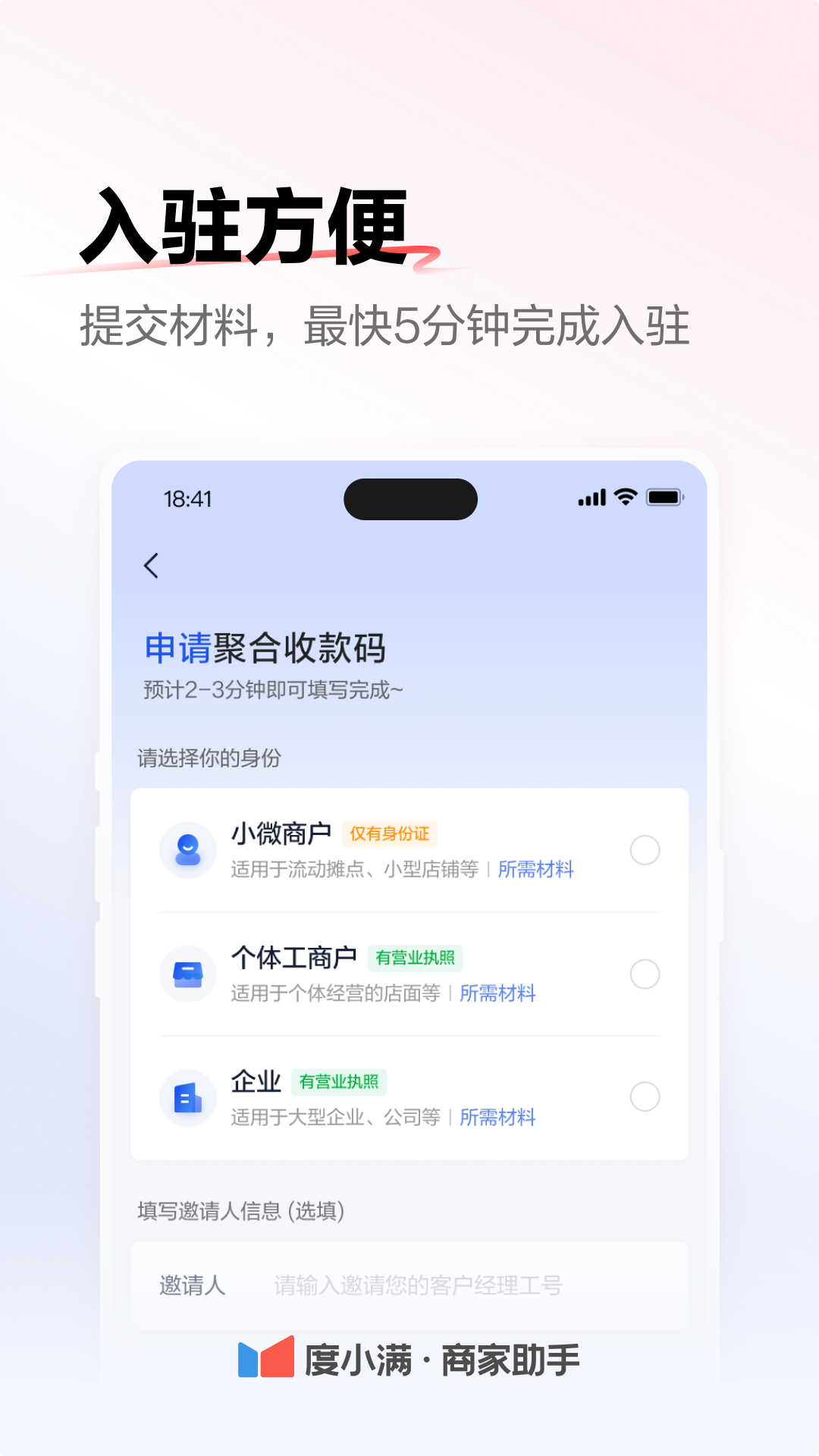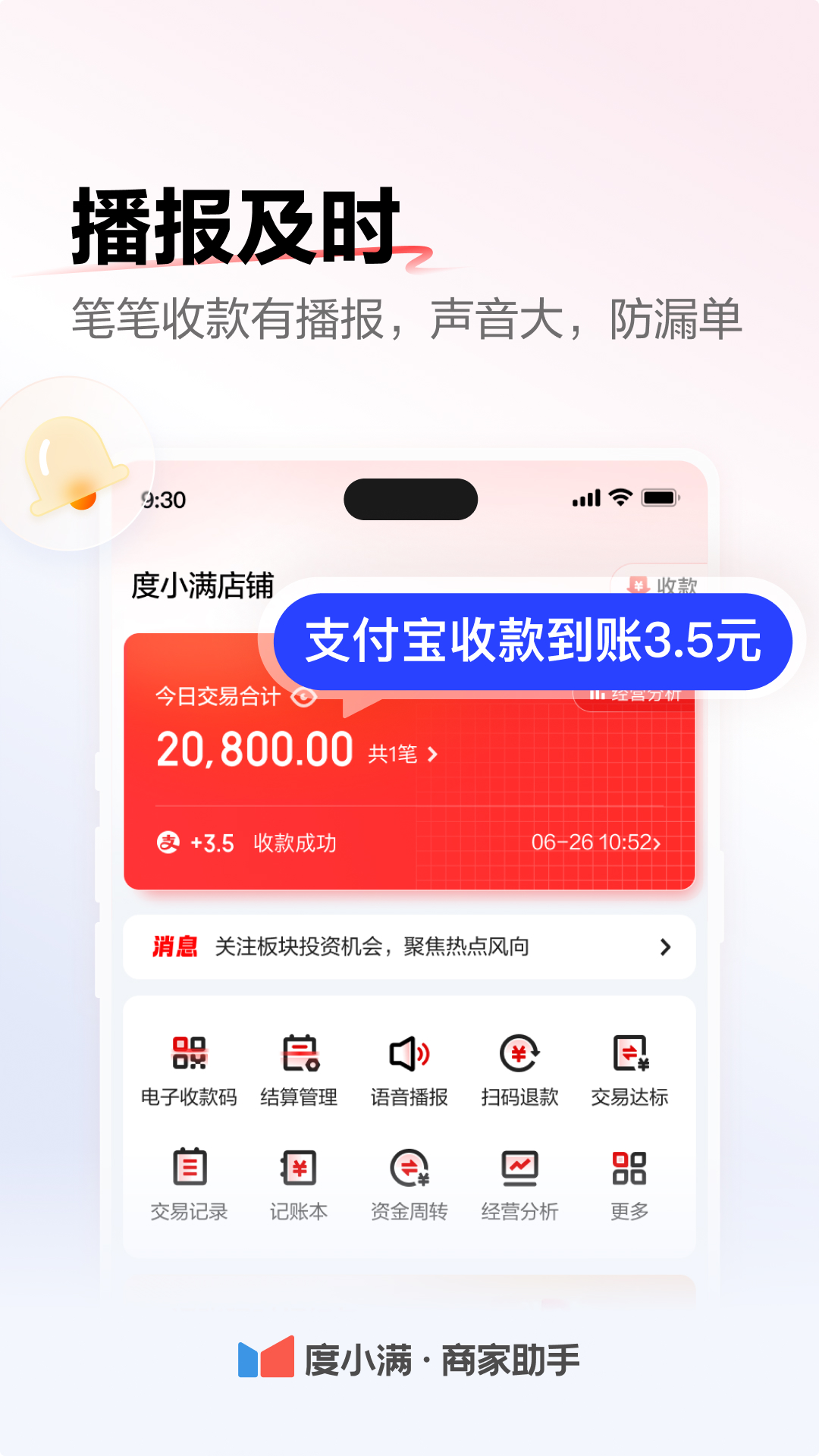 应用详情:度小满商家助手APP是一款为商户提供的生意经营专用软件。主要为生意经营伙伴的收...