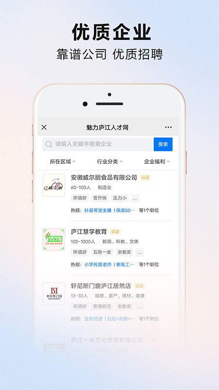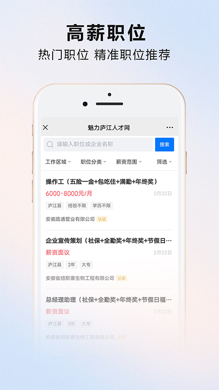 应用详情:魅力庐江人才网是庐江节点人力资源管理有限公司旗下招聘网站,致力于为求职者提...