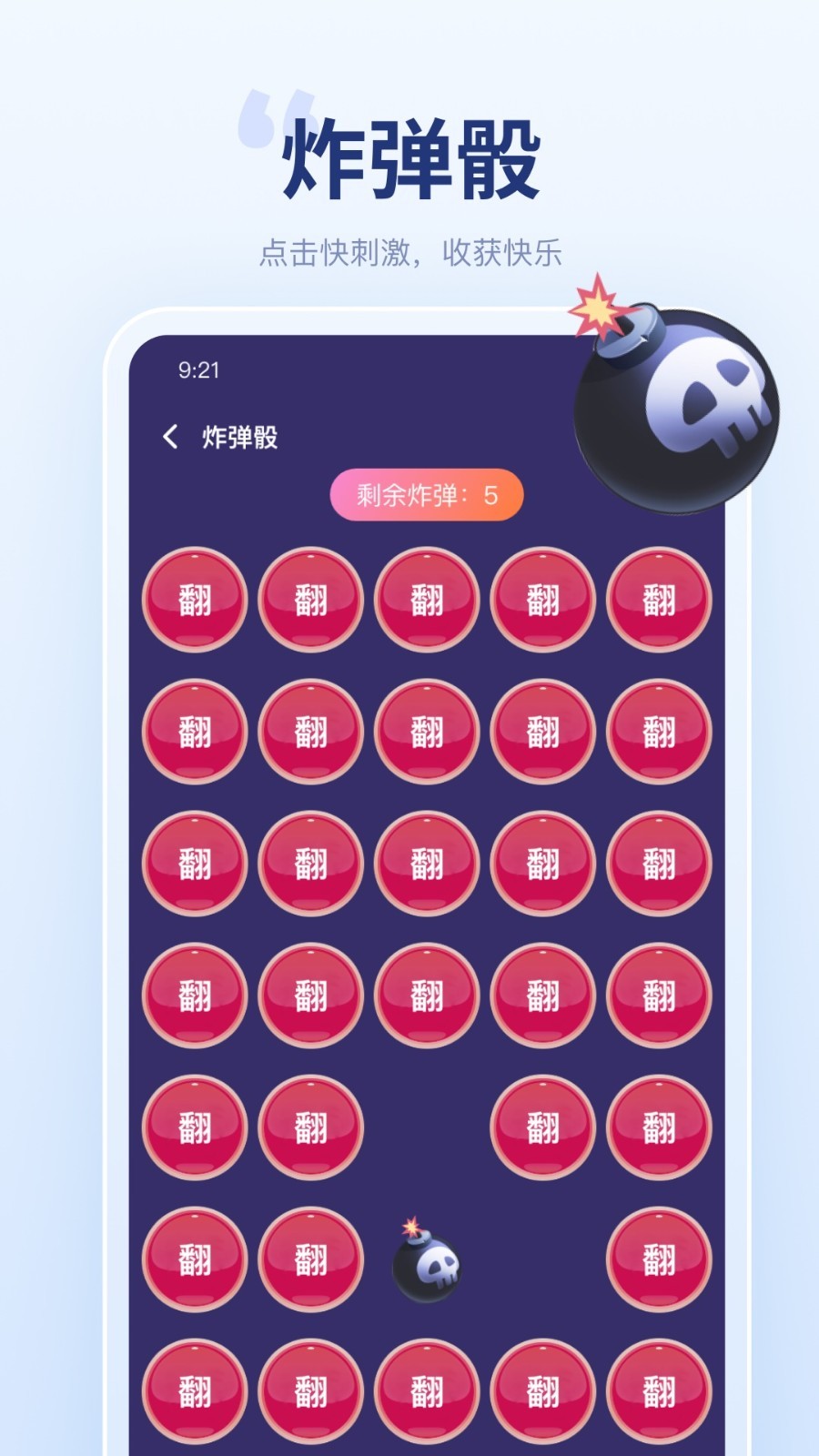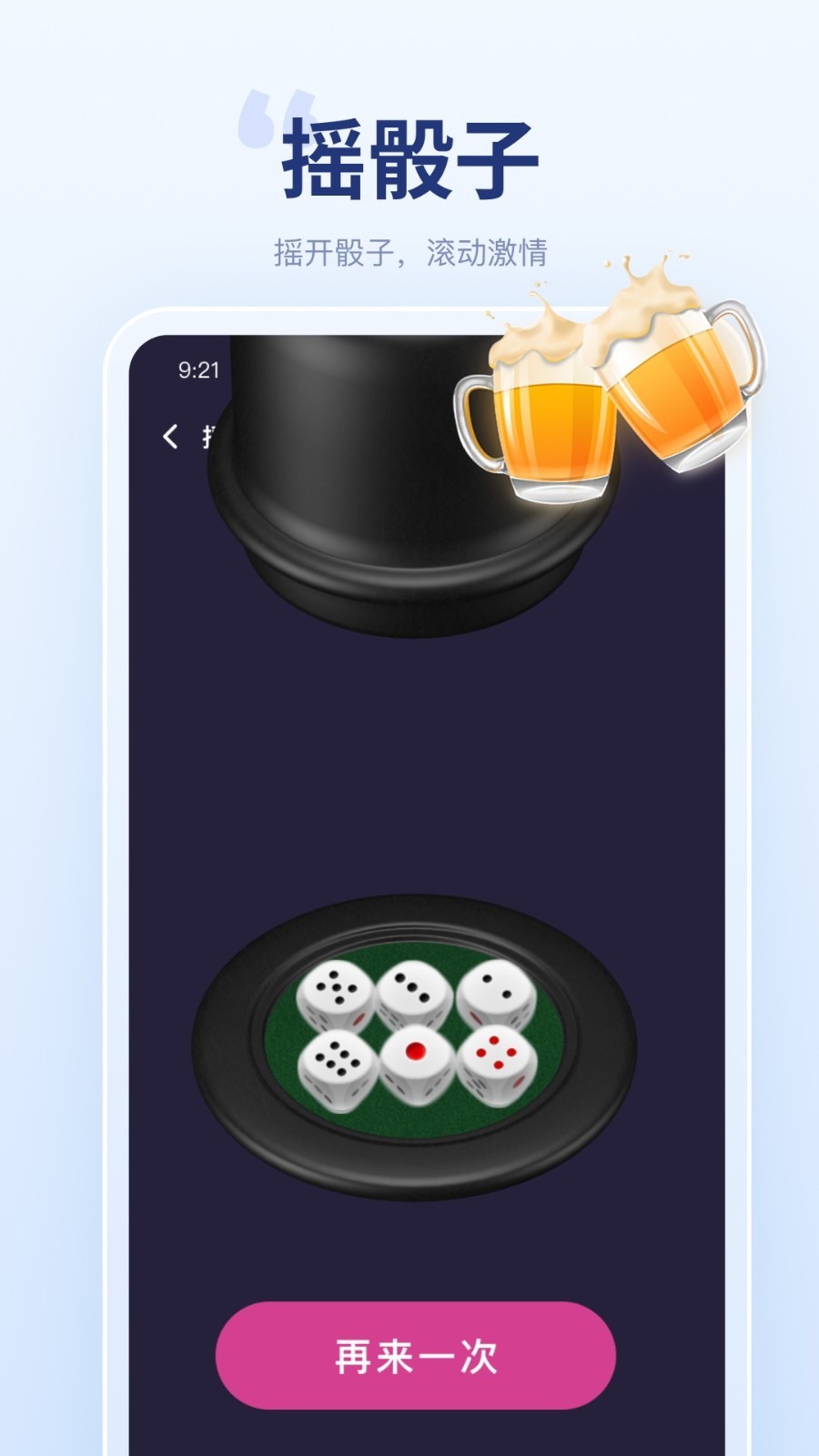 应用详情:聚会宝是聚会聚餐会玩的软件。有炸弹骰游戏、摇骰子、幸运转盘、真心话大冒险、随机数、石头剪刀布、猜盲盒等功能