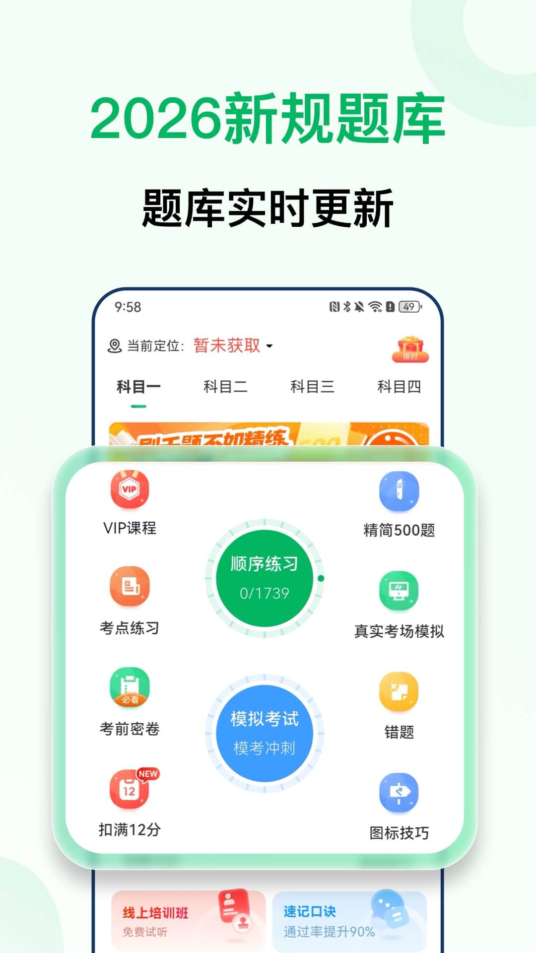 实时更新题库内容,始终掌握全新的考试题目。无论是科目一二三四题目还是考试动态的变化,都将及时进行更新,与考试同步进行学习和准备。时刻获取新的、准确的驾考信息。