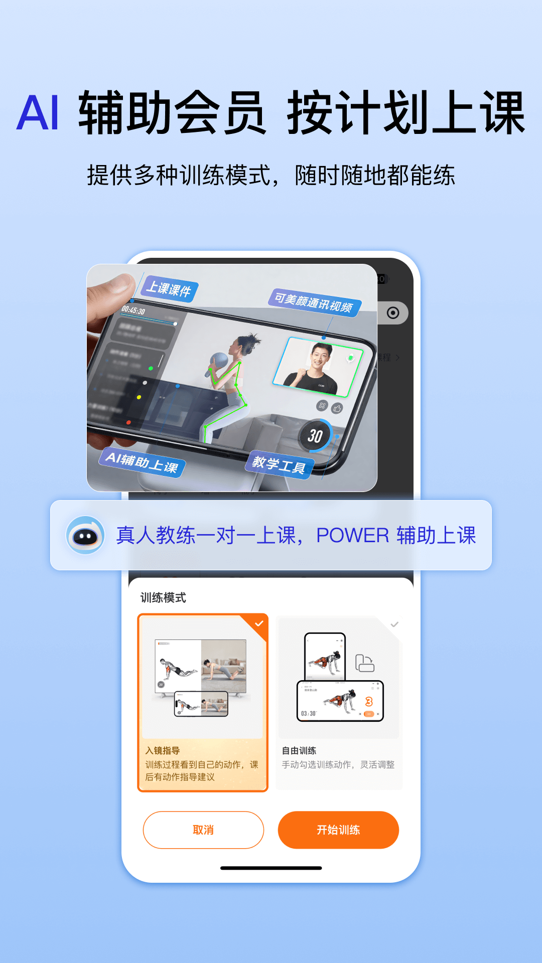 - 训练反馈:训练过程中有指导,训练过程有反馈,看得到自己做的动作才能把动作做对。