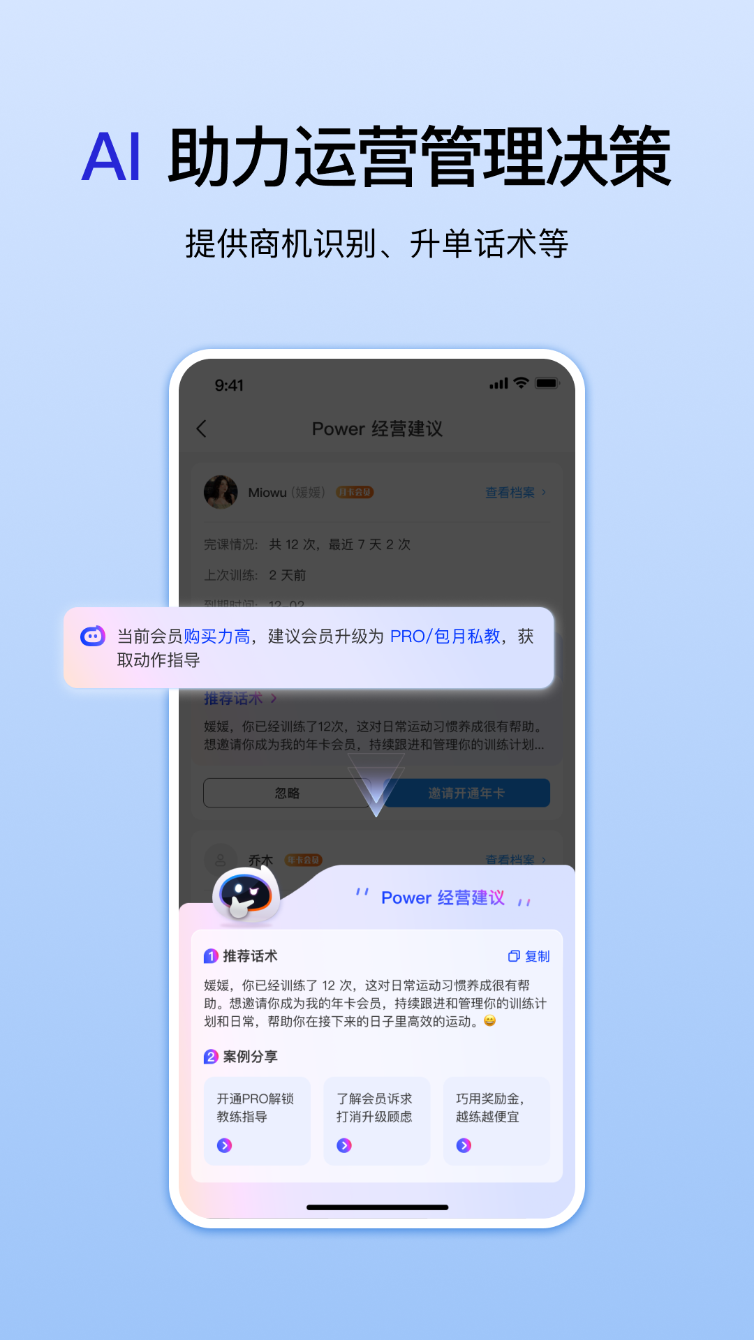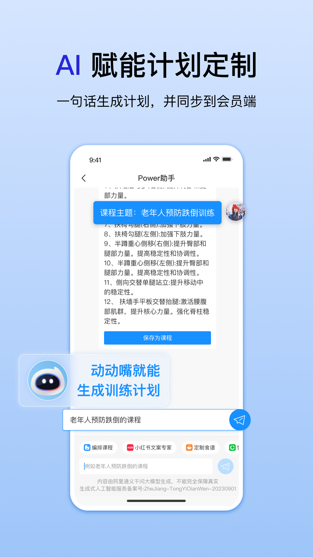 通过人工智能技术的强大支持,您可以轻松为会员定制和应用个性化的训练方案,满足会员在居家及健身房场景的训练需求。
