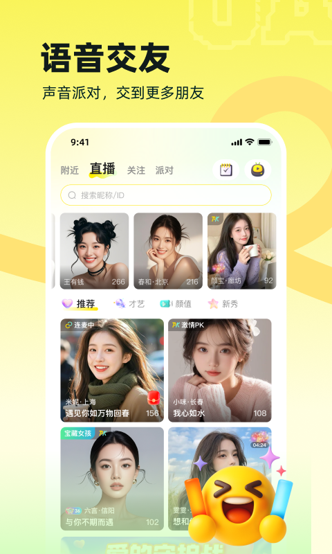 丰富多样的内容,涵盖舞蹈、艺术、户外等。你可以参与实时互动、视频交谈、语音沟通,结识意气相投的朋友们。