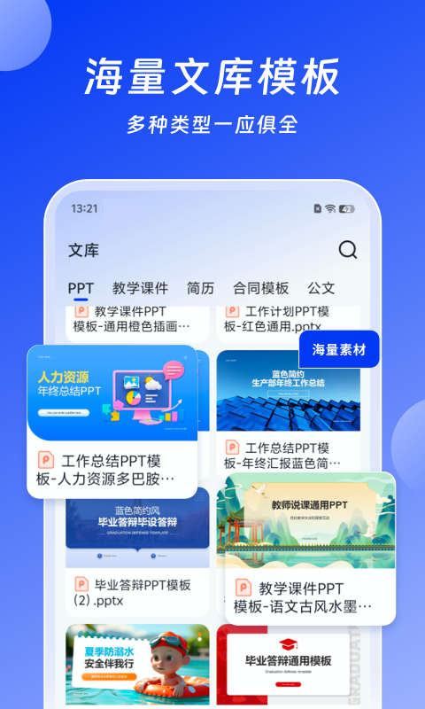 超多AI工具,智能助理、AI问答、AI写作、AIPPT、AI录音、AI证件照、AI办公、文库功能,海量模板可选