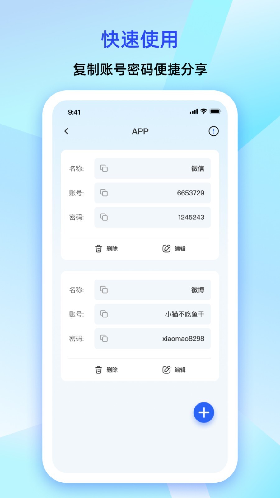 一款账号密码管理APP,为用户提供高效、简单的账号密码管理服务,同时支持私密相册管理,保护您的隐私安全。邮箱、银行卡等信息管理