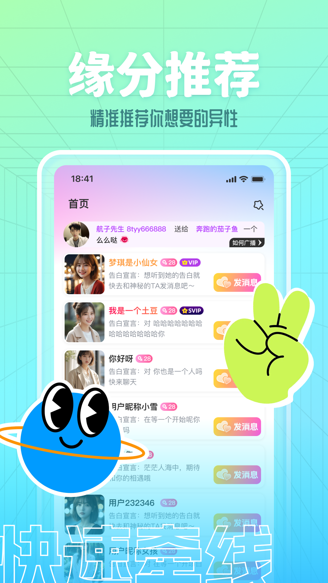 应用详情:本地探陌是一个真实高效的脱单平台。在这里,你可以通过文字、语音、视频等多种方式与同城附近的异性进行互动。真实交友平台,匹配通过人工审核的真人用户,单身男女们的共同选择,期待你在这里也能找到属于你的爱情!