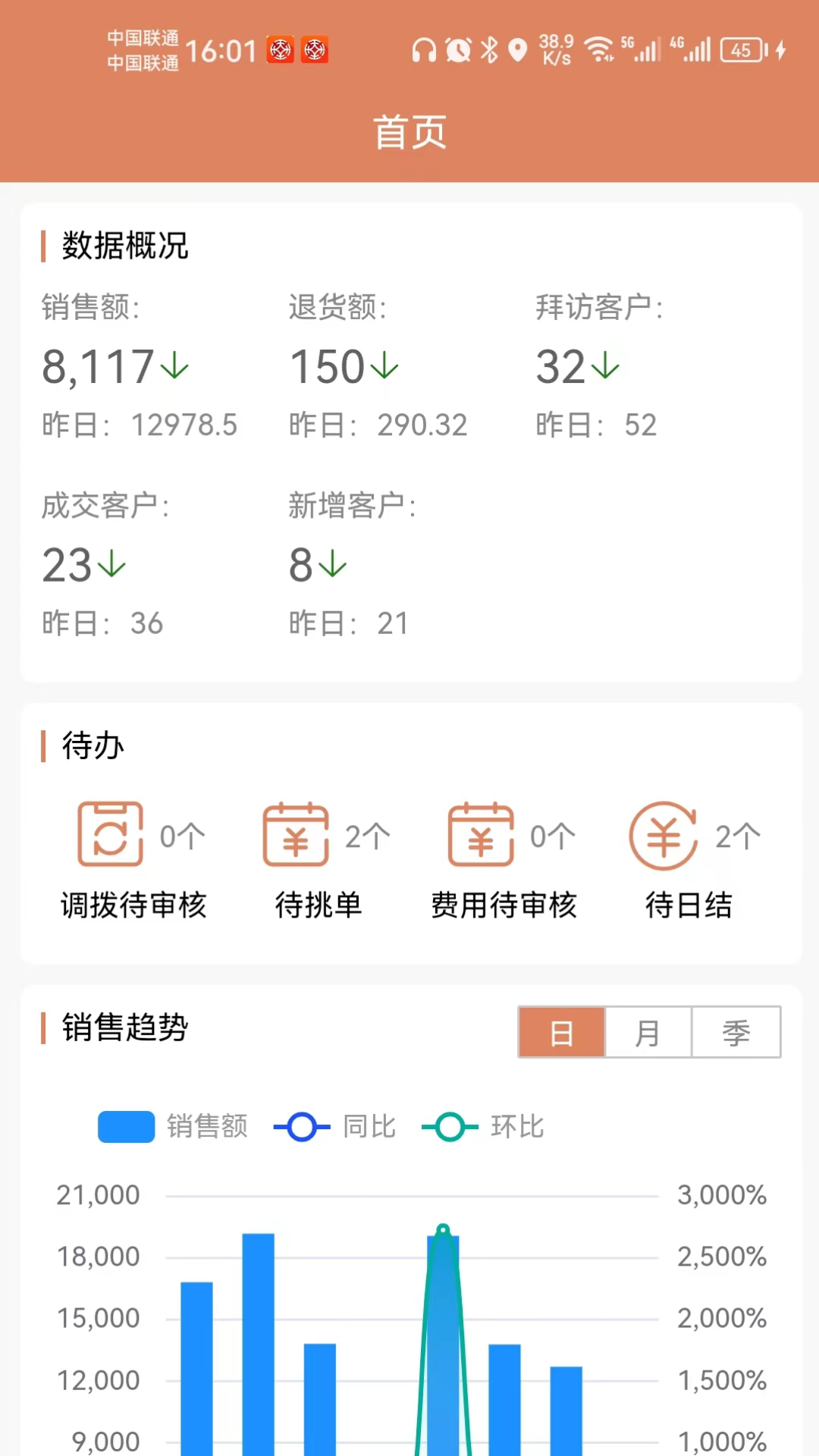 -数据管理(按人员、按商品、按门店查看利润贡献率、销售排行、退货排行;查看各业务人员的销售、退货、费用、收款等数据汇总;查看各仓库库存、价格、库存预警;查看各类经营报表、经营日报、利润表、同比及环比分析等)