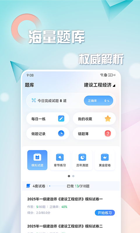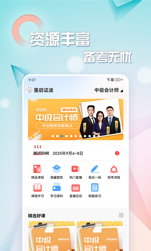 应用详情:重启证途致力于构建高质量的在线学习工具,涵盖了医疗健康、建筑消防、财会金融、职业资格认证、学历进修以及职业技能提升等诸多板块,提供数十种丰富多样的服务项目。我们精心准备: 精品课程:精心制作了一系列优质的课程视频资源,不仅支持线上试听,还允许用户离线下载,随时随地灵活学习。 学习资源包:为了配合课程学习,我们提供了全套配套教材,包括详尽的课程讲义、便携实用的口袋书、逻辑明晰的思维导图,以及丰富的历年真题、模拟试题库。同时,每个章节都配备了对应的练习题,形成了一整套系统性的辅助学习材料,有力支撑学员们的个性化学习进程。