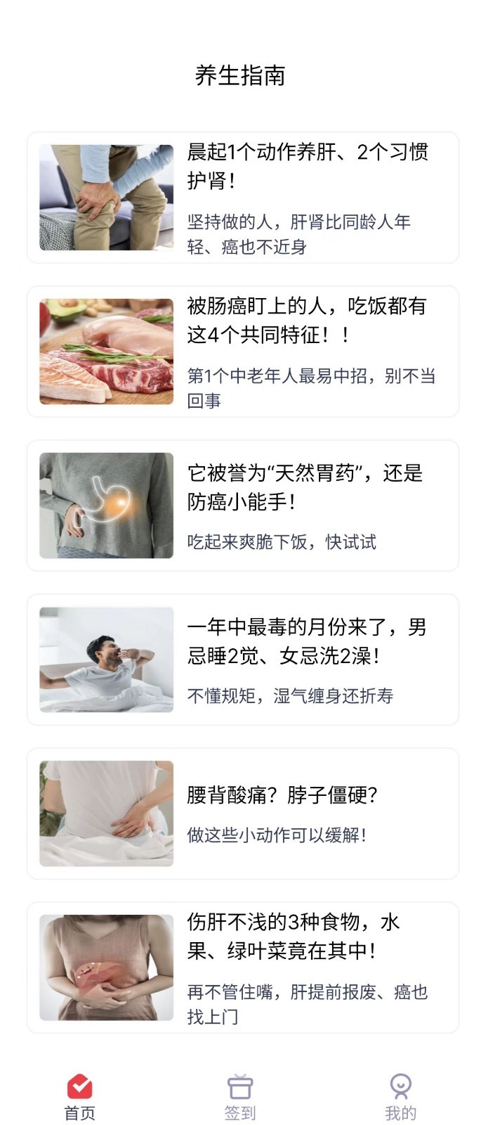 应用详情:每日养生话题,不同的节气搭配时令蔬菜和水果更加契合,吃的讲究,吃的健康,每日坚持打卡,提醒自己,让我们关注健康,呵护家人,成为您的养生指南启明星