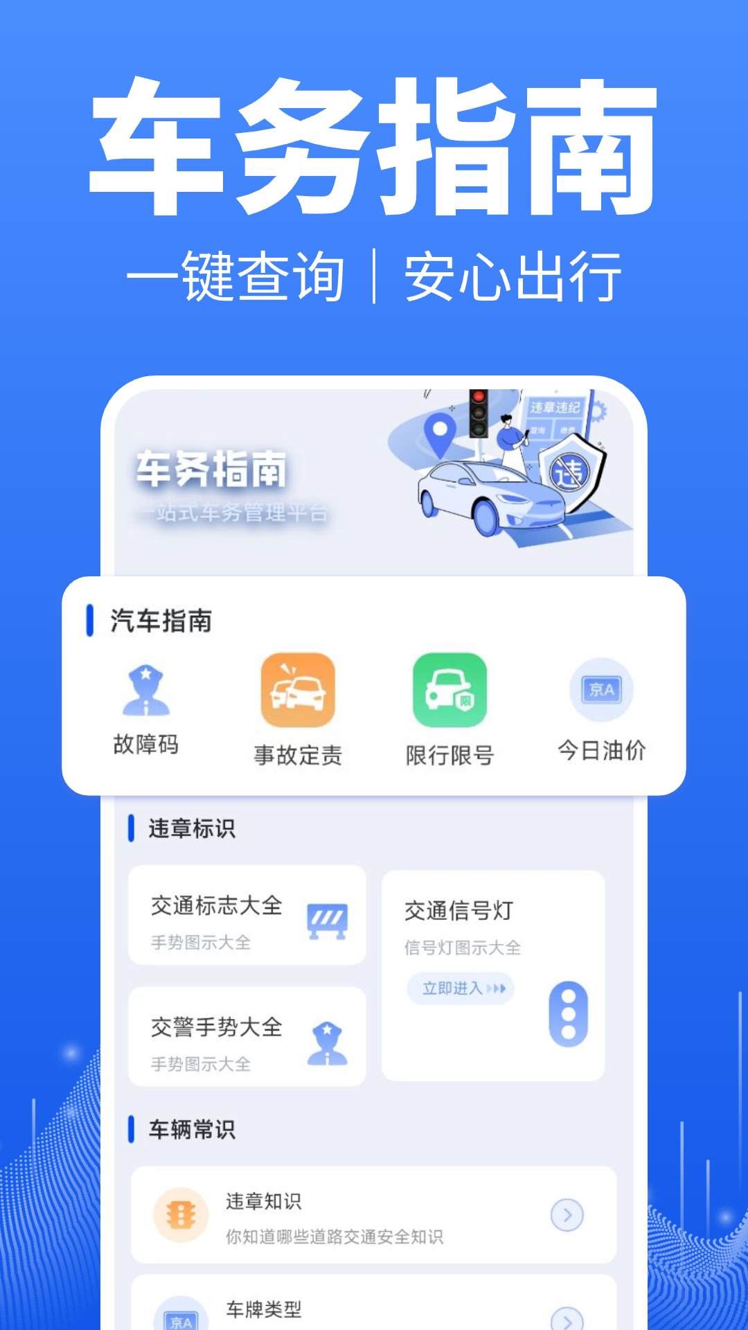 车辆常识:应用内包含了丰富的车辆相关知识,如汽车保养、安全驾驶技巧等,帮助车主更好地维护和管理自己的车辆。