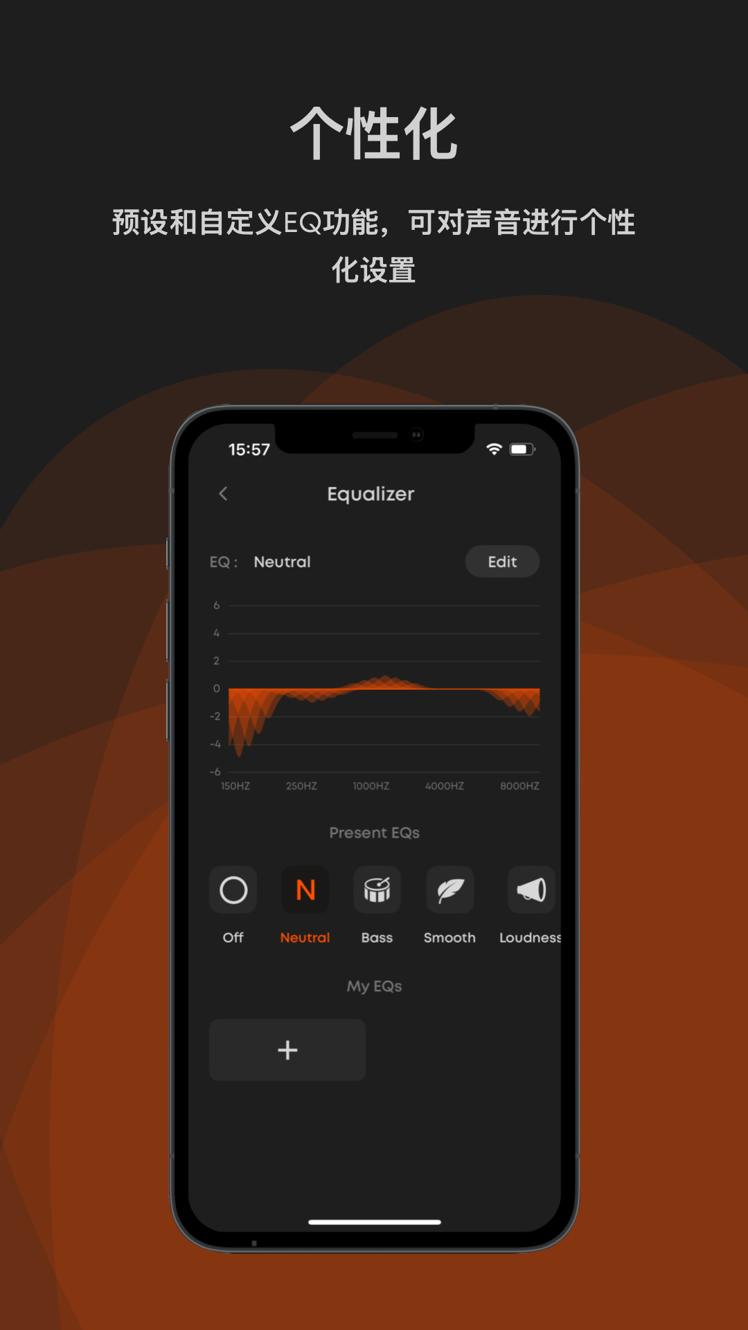 让beyerdynamic 蓝牙耳机成为您的专属耳机,使用beyerdynamic应用程序带来个性化的感受。通过预设和自定义EQ功能,您可以根据自己的喜好优化耳机。通过这种方式,您可以在每一个细节中体验到精彩的声音感受。
